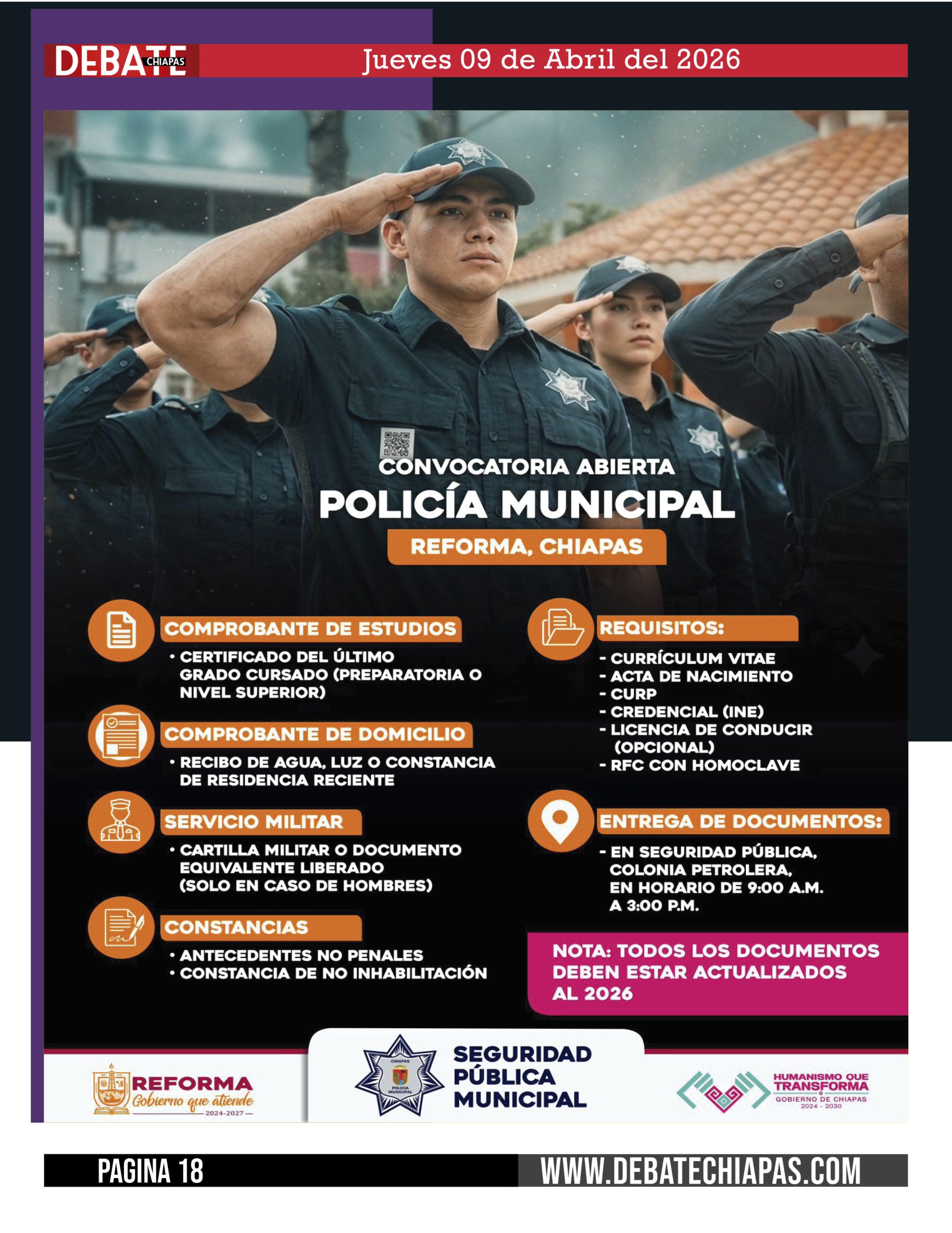 ¡Convocatoria Abierta! Policía Municipal de Reforma, Chiapas