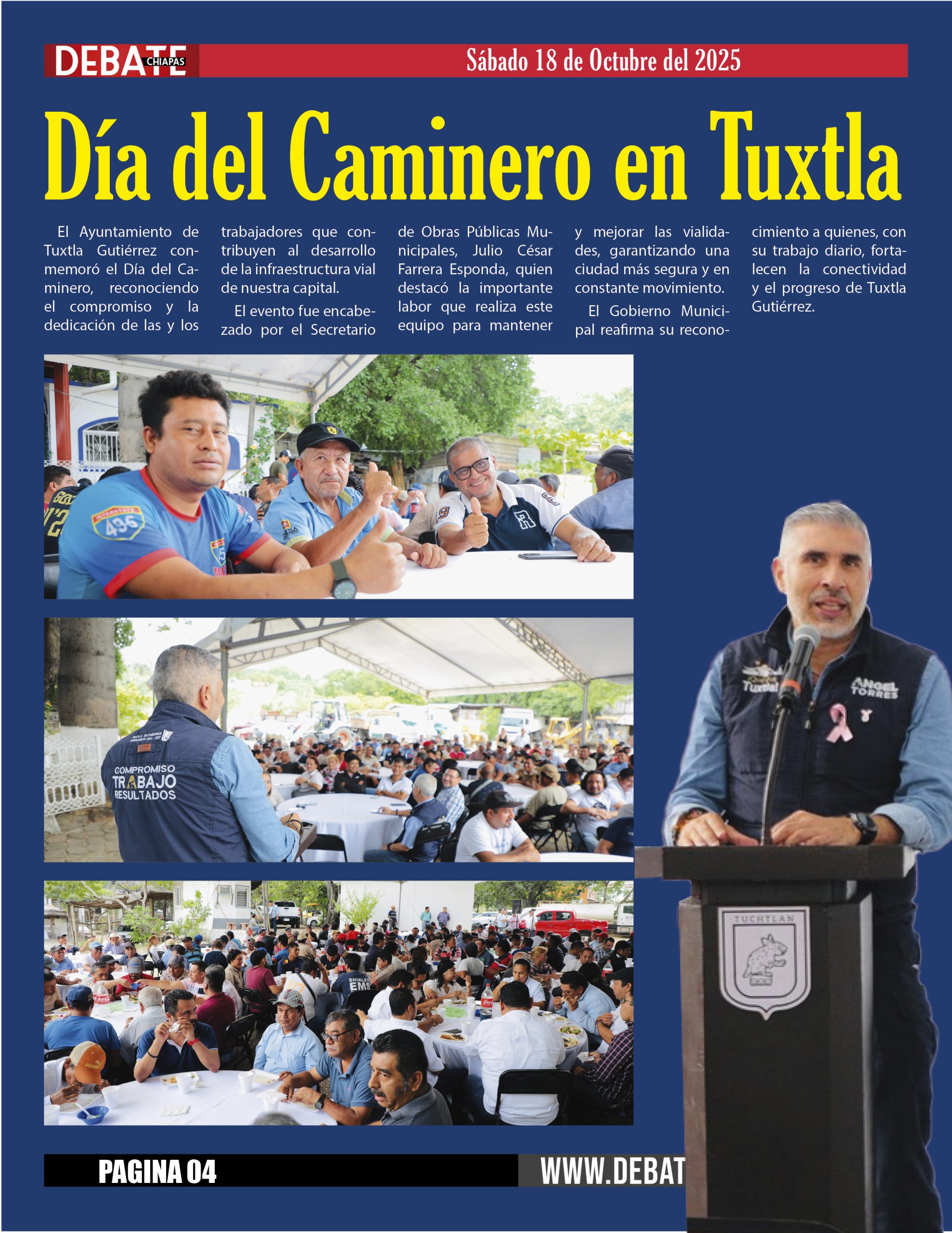 El Ayuntamiento de Tuxtla Gutiérrez conmemoró el Día del Caminero, reconociendo el compromiso y la dedicación de las y los trabajadores que contribuyen al desarrollo de la infraestructura vial de nuestra capital.