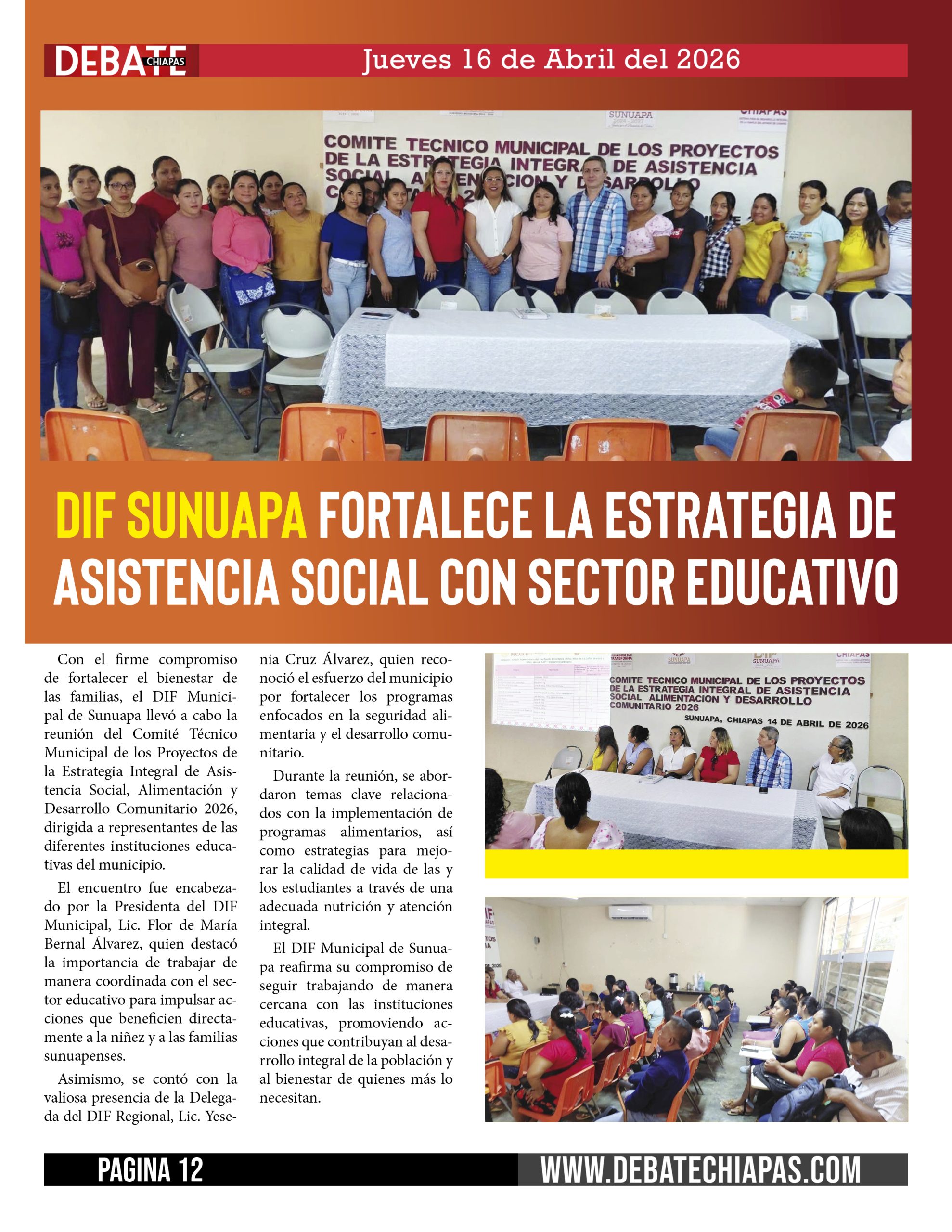 Con el firme compromiso de fortalecer el bienestar de las familias, el DIF Municipal de Sunuapa llevó a cabo la reunión del Comité Técnico Municipal de los Proyectos de la Estrategia Integral de Asistencia Social, Alimentación y Desarrollo Comunitario 2026, dirigida a representantes de las diferentes instituciones educativas del municipio.