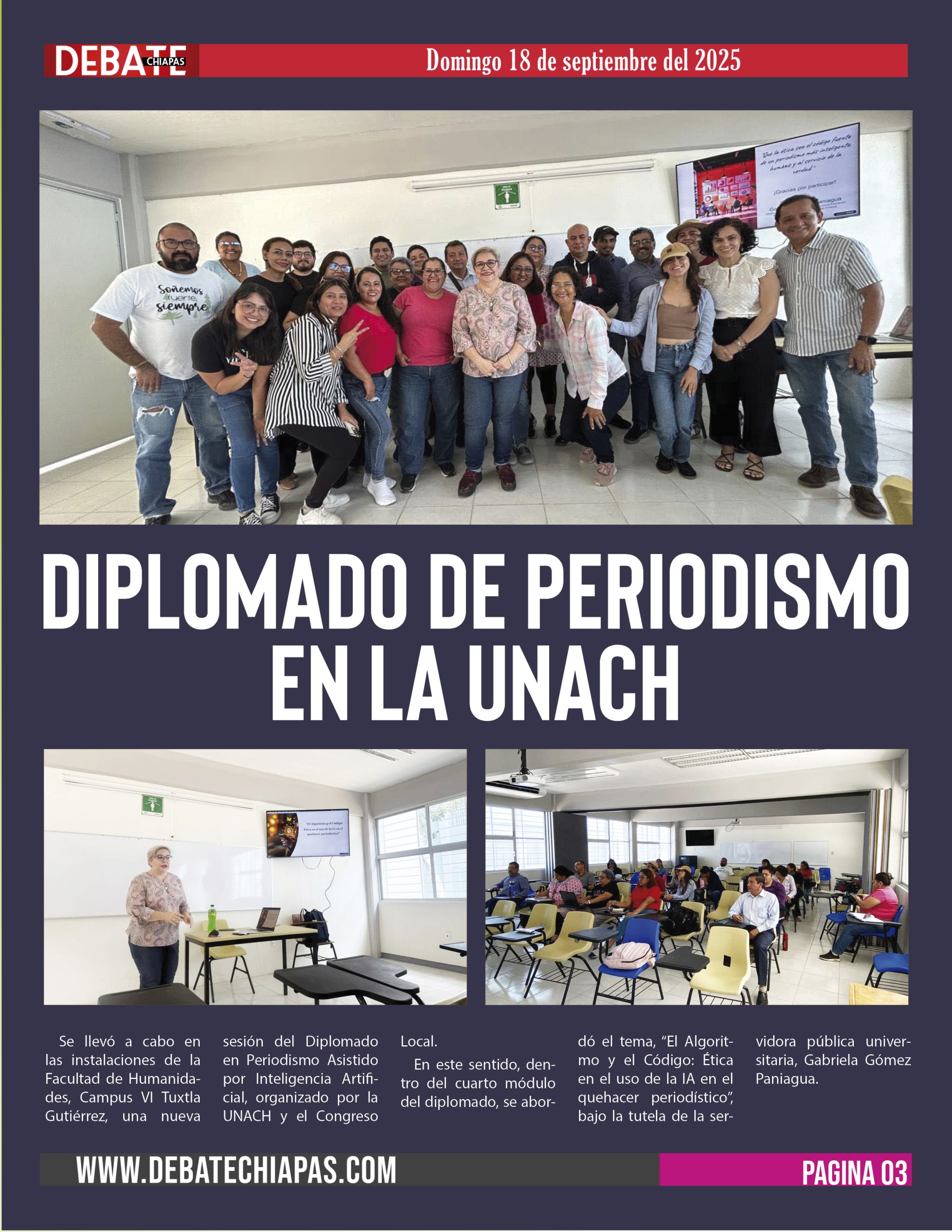 Se llevó a cabo en las instalaciones de la Facultad de Humanidades, Campus VI Tuxtla Gutiérrez, una nueva sesión del Diplomado en Periodismo Asistido por Inteligencia Artificial, organizado por la UNACH y el Congreso Local.