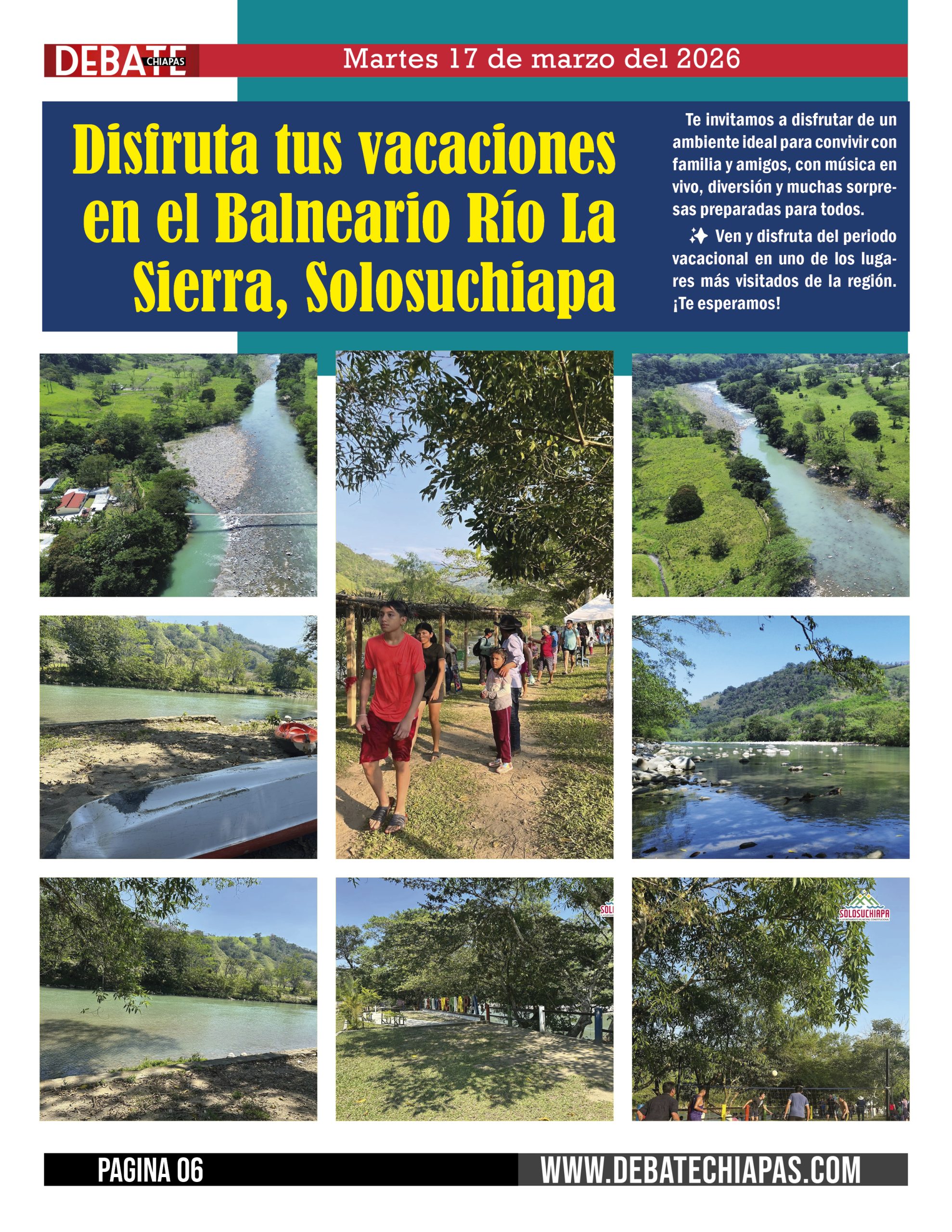 Disfruta tus vacaciones en el Balneario Río La Sierra, Solosuchiapa