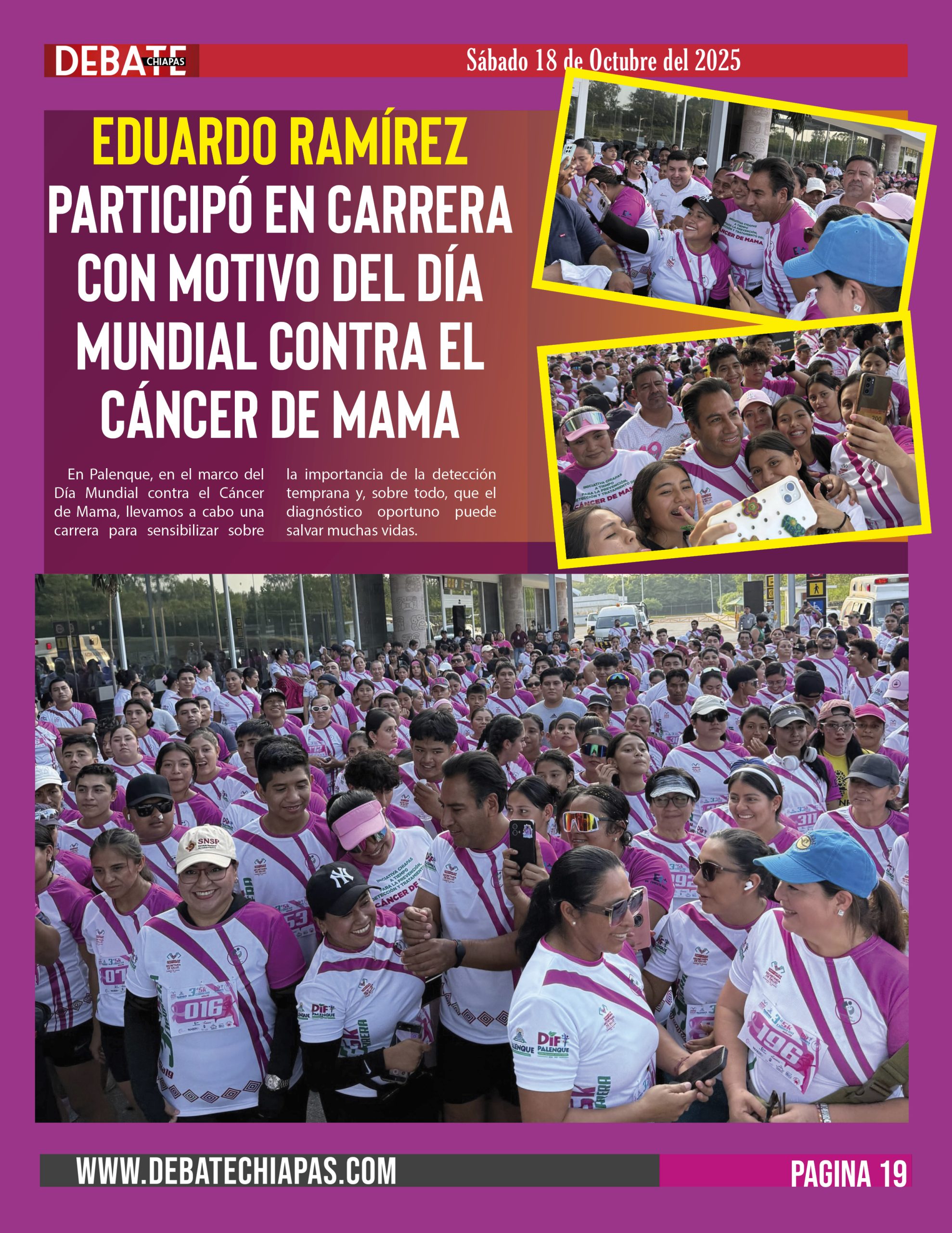 En Palenque, en el marco del Día Mundial contra el Cáncer de Mama, llevamos a cabo una carrera para sensibilizar sobre la importancia de la detección temprana y, sobre todo, que el diagnóstico oportuno puede salvar muchas vidas.