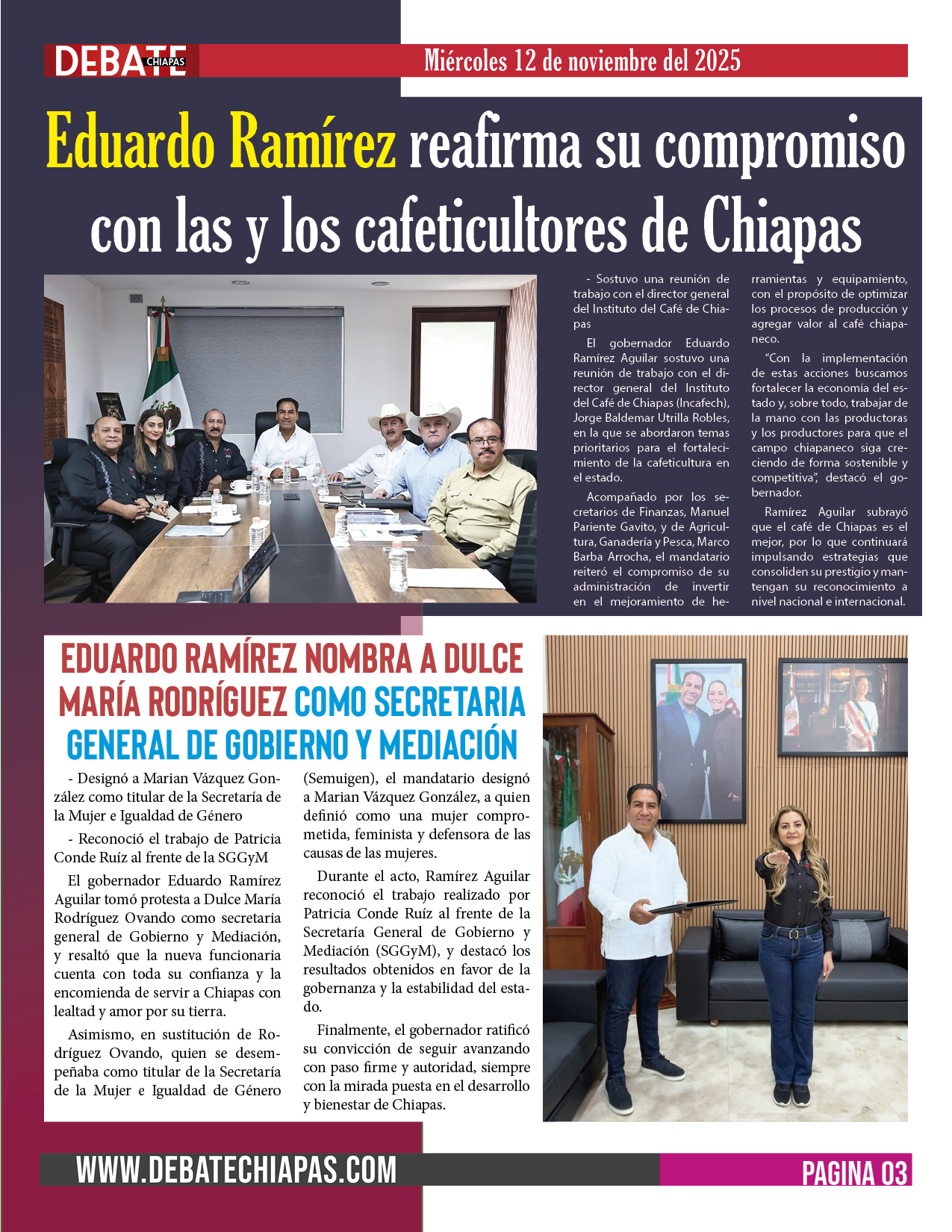 “Con la implementación de estas acciones buscamos fortalecer la economía del estado y, sobre todo, trabajar de la mano con las productoras y los productores para que el campo chiapaneco siga creciendo de forma sostenible y competitiva”, destacó el gobernador.