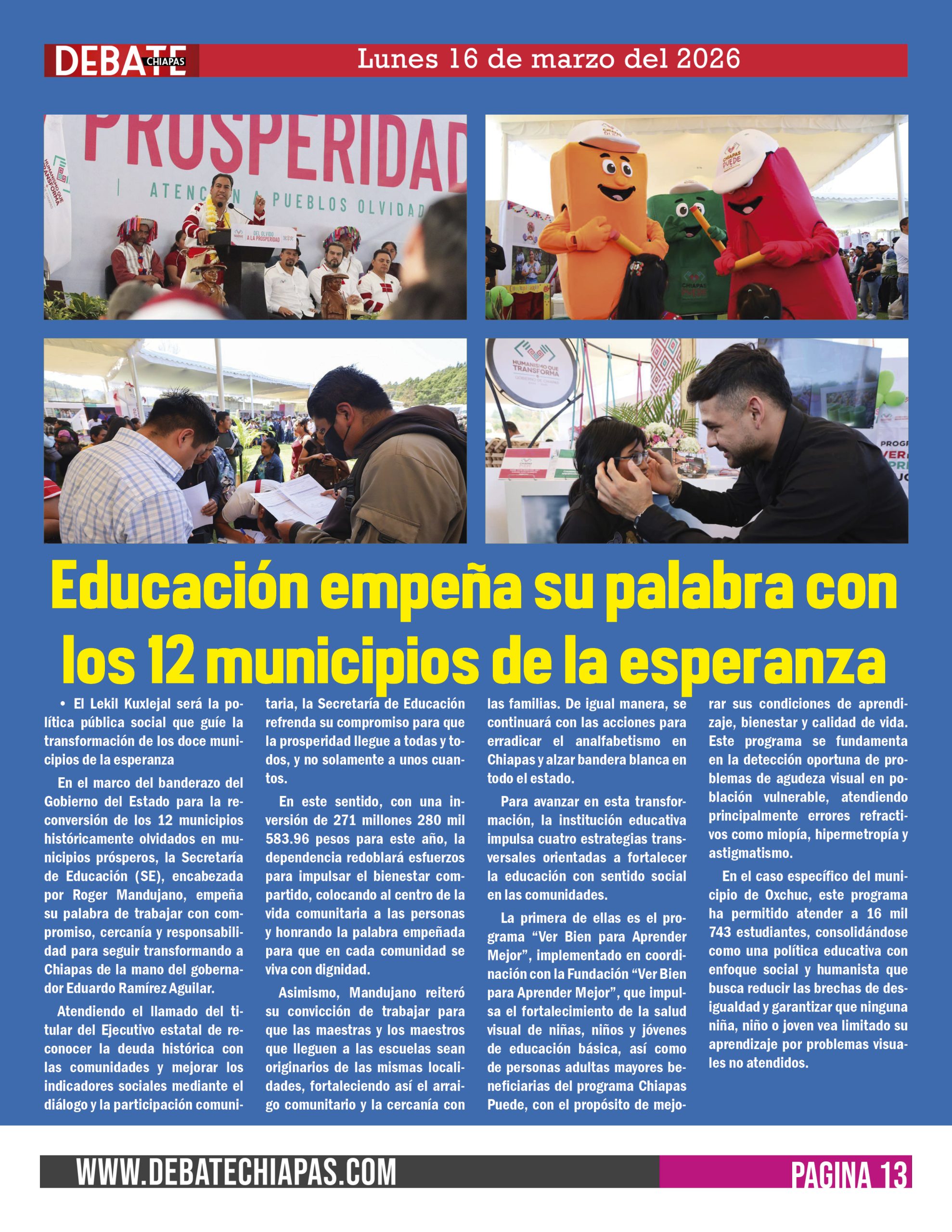 Como eje rector de la política educativa, este programa se convierte en la base sobre la cual se fortalecen los demás apoyos escolares, pues alfabetizar es abrir la puerta a todas las oportunidades. De esta manera, Chiapas Puede se consolida como el testimonio de un gobierno que cree en la educación como motor de libertad, dignidad y desarrollo para todas y todos los chiapanecos.