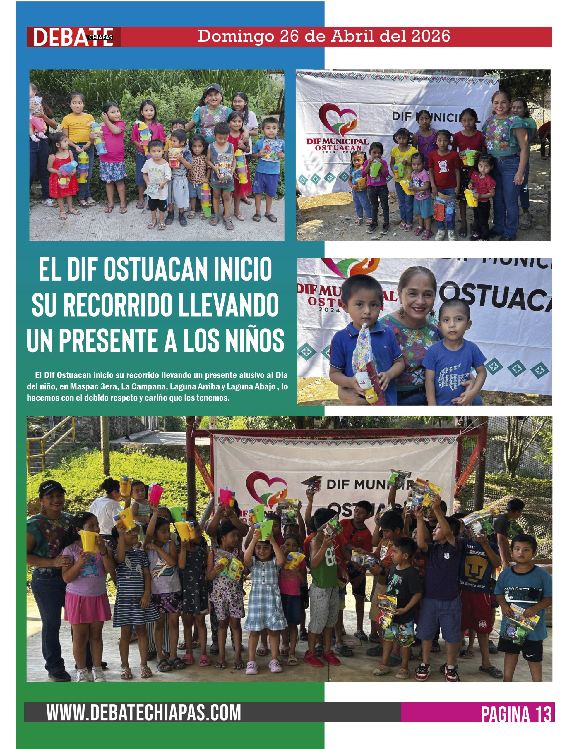 El Dif Ostuacan inicio su recorrido llevando un presente alusivo al Dia del niño, en Maspac 3era, La Campana, Laguna Arriba y Laguna Abajo , lo hacemos con el debido respeto y cariño que les tenemos.
