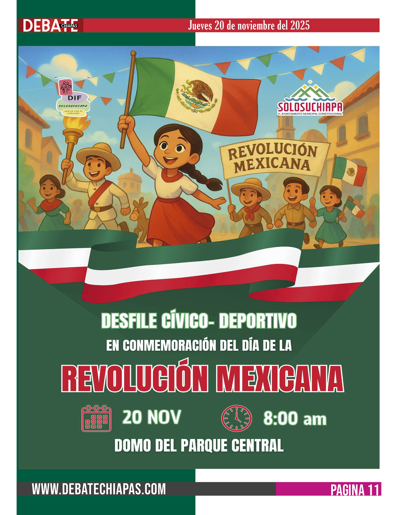 Este jueves 20 de noviembre se llevará a cabo el Desfile Cívico-Deportivo con motivo de la Conmemoración de la Revolución Mexicana.