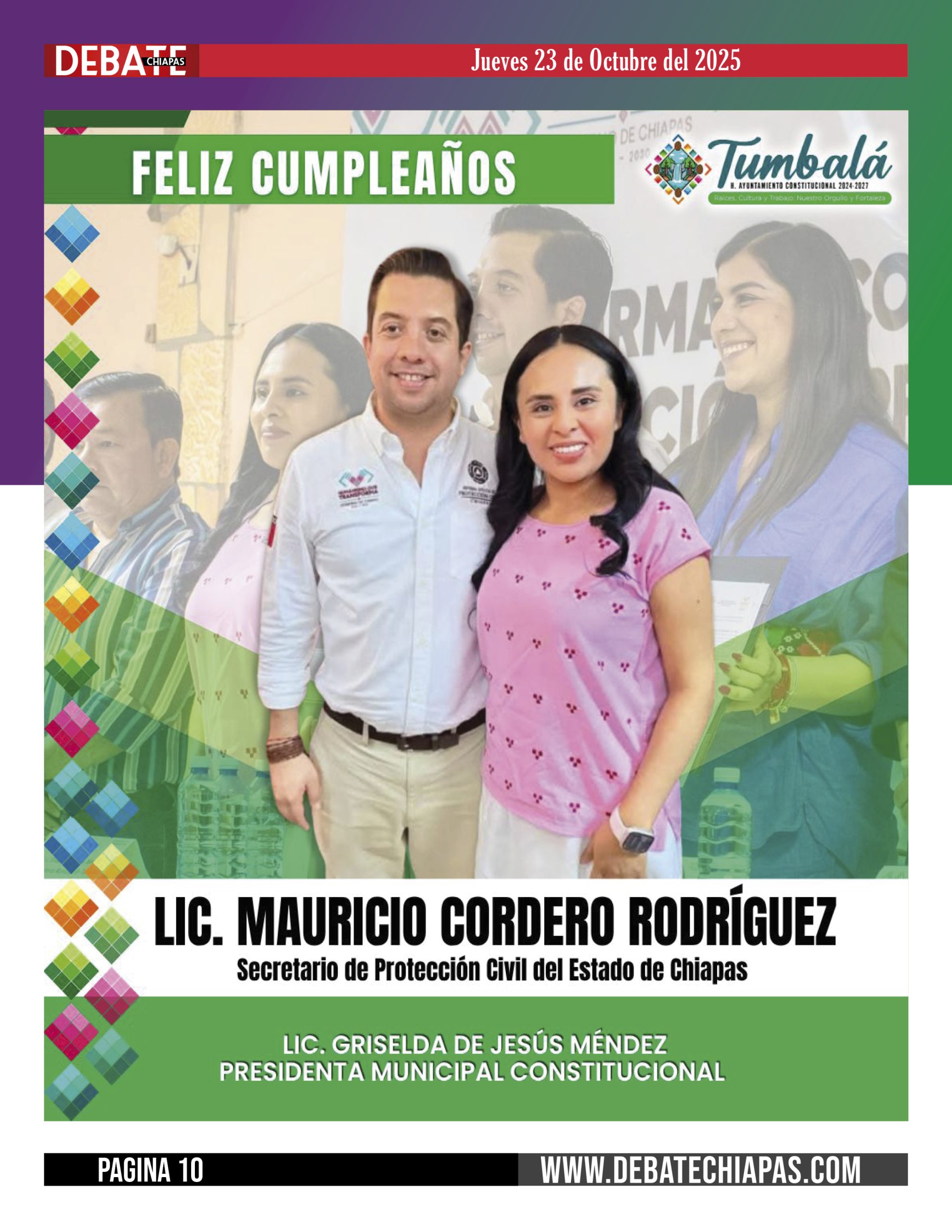 Con motivo de su cumpleaños, expresamos nuestro más sincero reconocimiento y aprecio por su destacada labor, liderazgo y compromiso al servicio de la población chiapaneca.