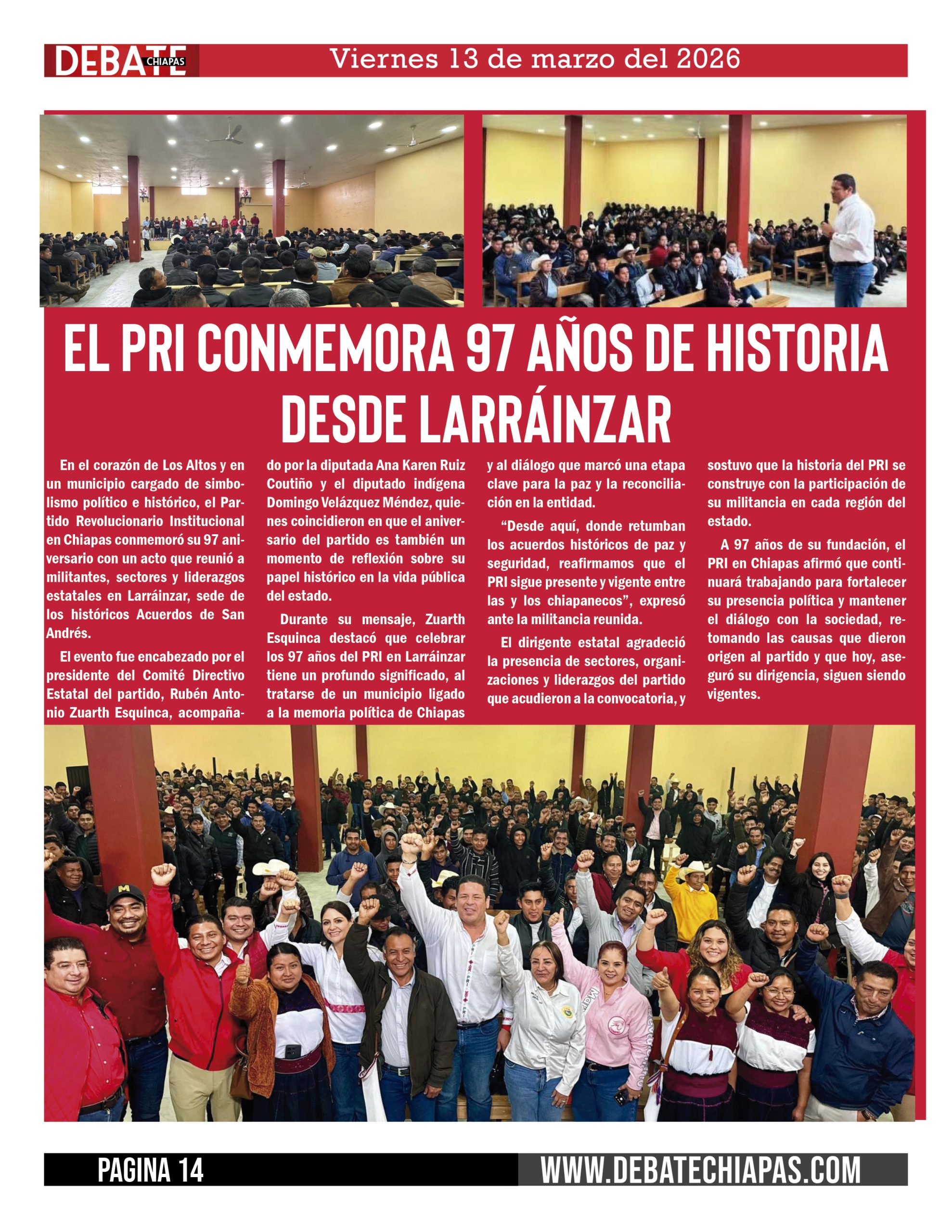 A 97 años de su fundación, el PRI en Chiapas afirmó que continuará trabajando para fortalecer su presencia política y mantener el diálogo con la sociedad, retomando las causas que dieron origen al partido y que hoy, aseguró su dirigencia, siguen siendo vigentes.