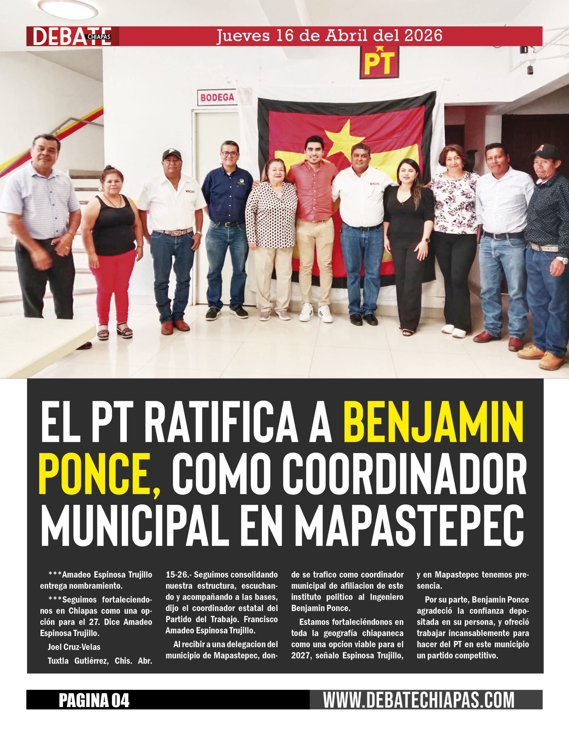 El PT ratifica a Benjamin Ponce, como coordinador municipal en Mapastepec