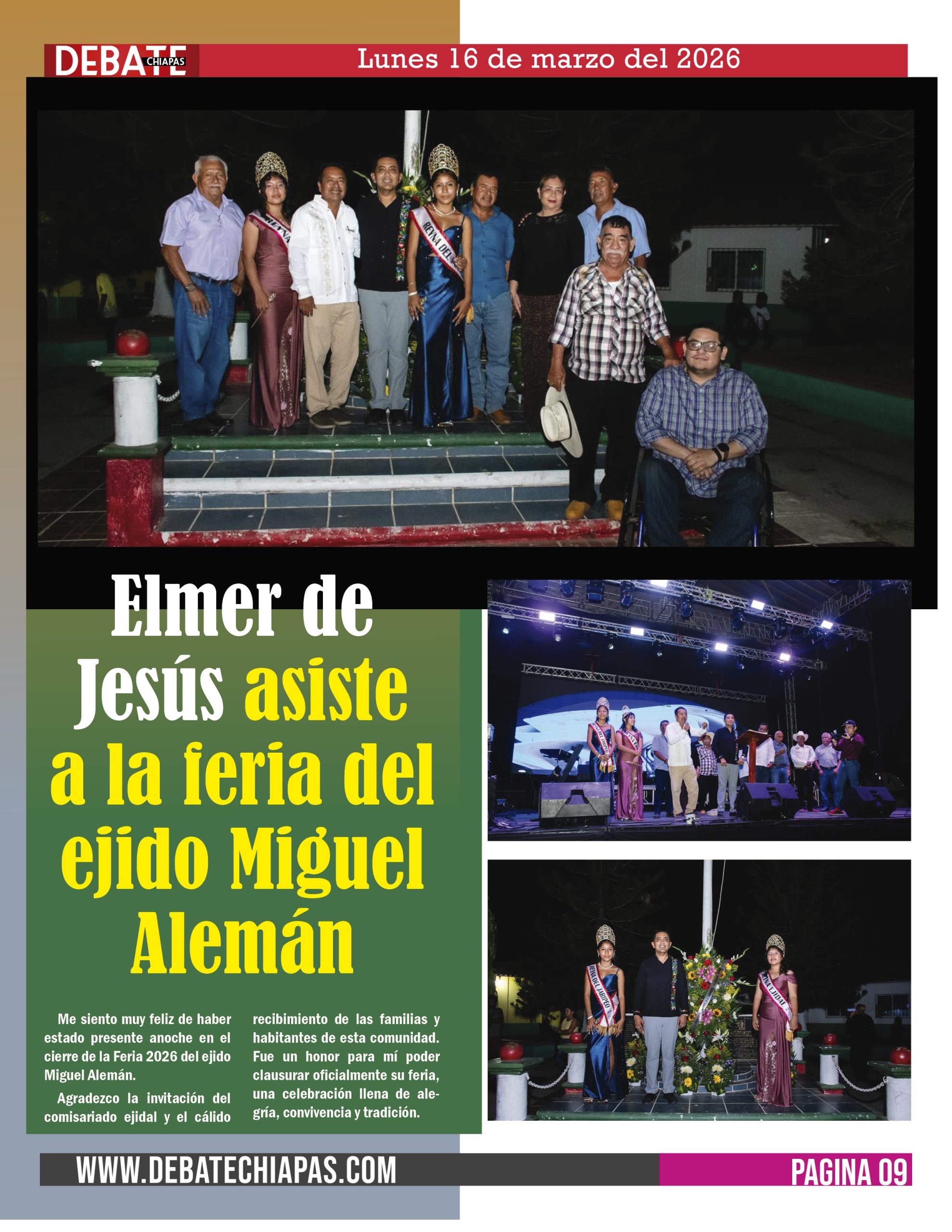 Elmer de Jesús asiste a la feria del ejido Miguel Alemán