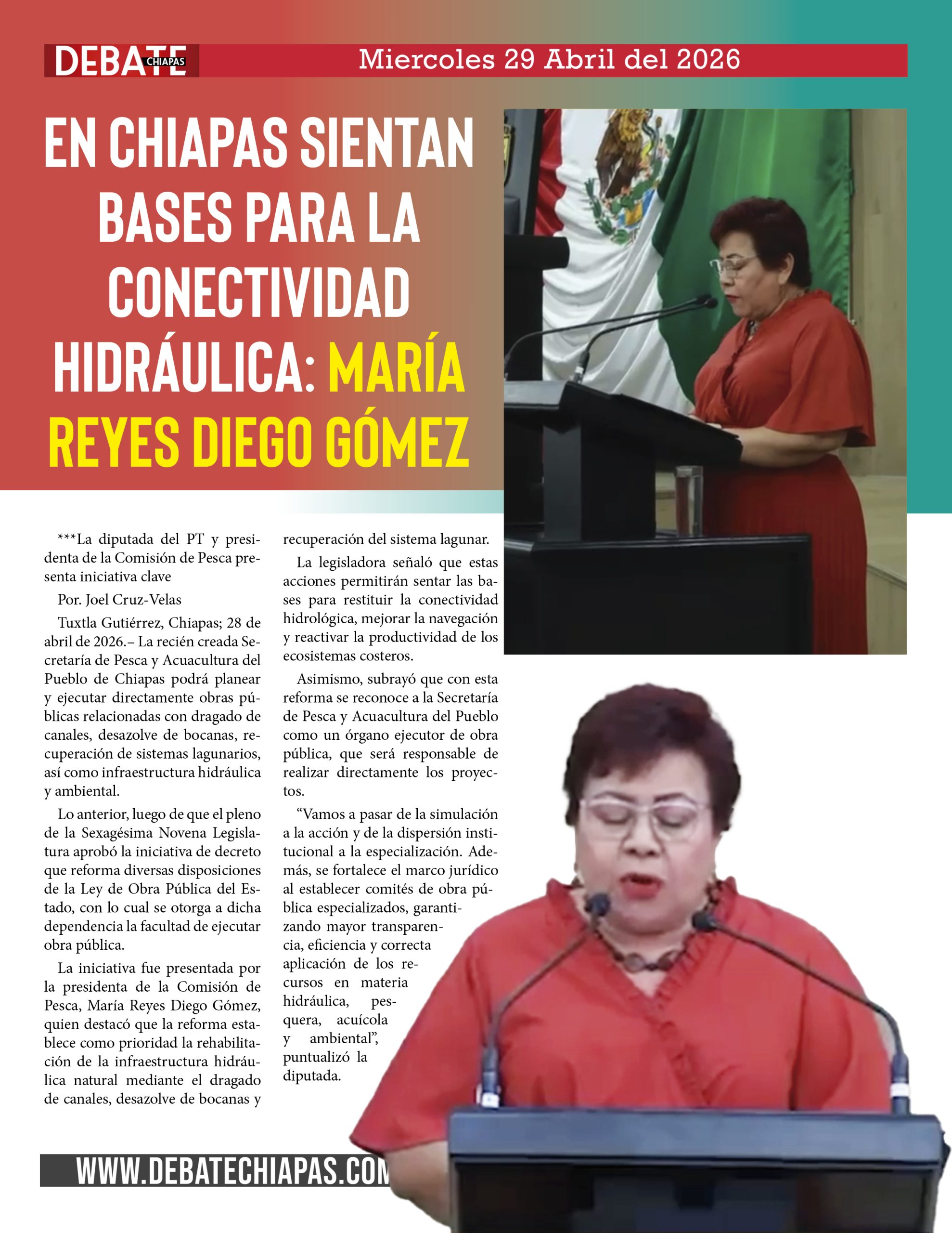 Tuxtla Gutiérrez, Chiapas; 28 de abril de 2026.– La recién creada Secretaría de Pesca y Acuacultura del Pueblo de Chiapas podrá planear y ejecutar directamente obras públicas relacionadas con dragado de canales, desazolve de bocanas, recuperación de sistemas lagunarios, así como infraestructura hidráulica y ambiental.