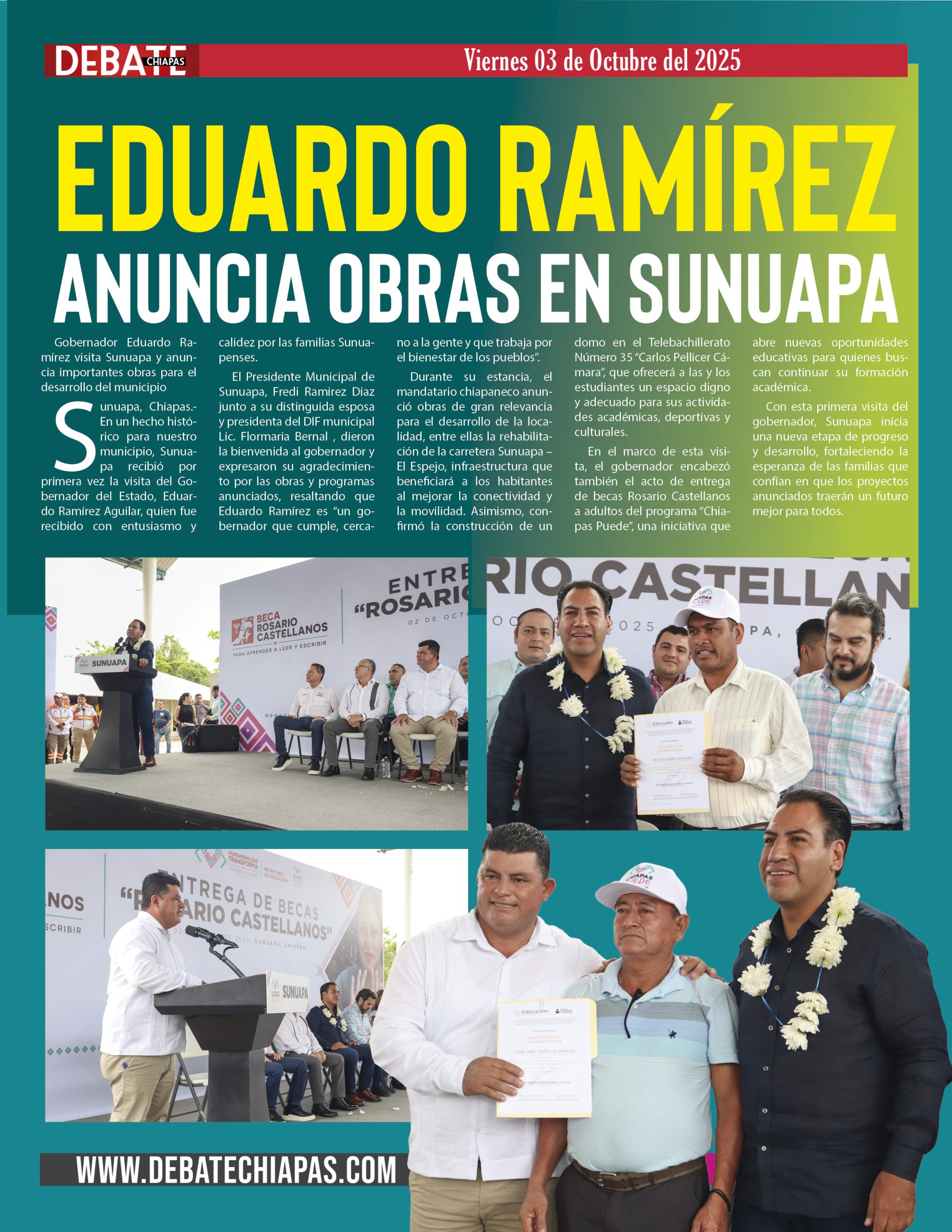 En el marco de esta visita, el gobernador encabezó también el acto de entrega de becas Rosario Castellanos a adultos del programa “Chiapas Puede”, una iniciativa que abre nuevas oportunidades educativas para quienes buscan continuar su formación académica.