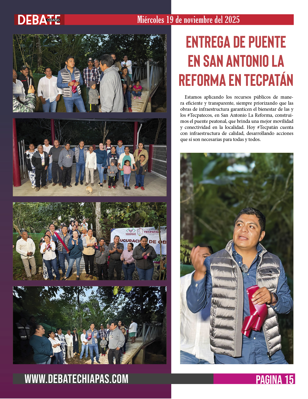 Estamos aplicando los recursos públicos de manera eficiente y transparente, siempre priorizando que las obras de infraestructura garanticen el bienestar de las y los #Tecpatecos, en San Antonio La Reforma, construimos el puente peatonal, que brinda una mejor movilidad y conectividad en la localidad. Hoy #Tecpatán cuenta con infraestructura de calidad, desarrollando acciones que sí son necesarias para todas y todos.