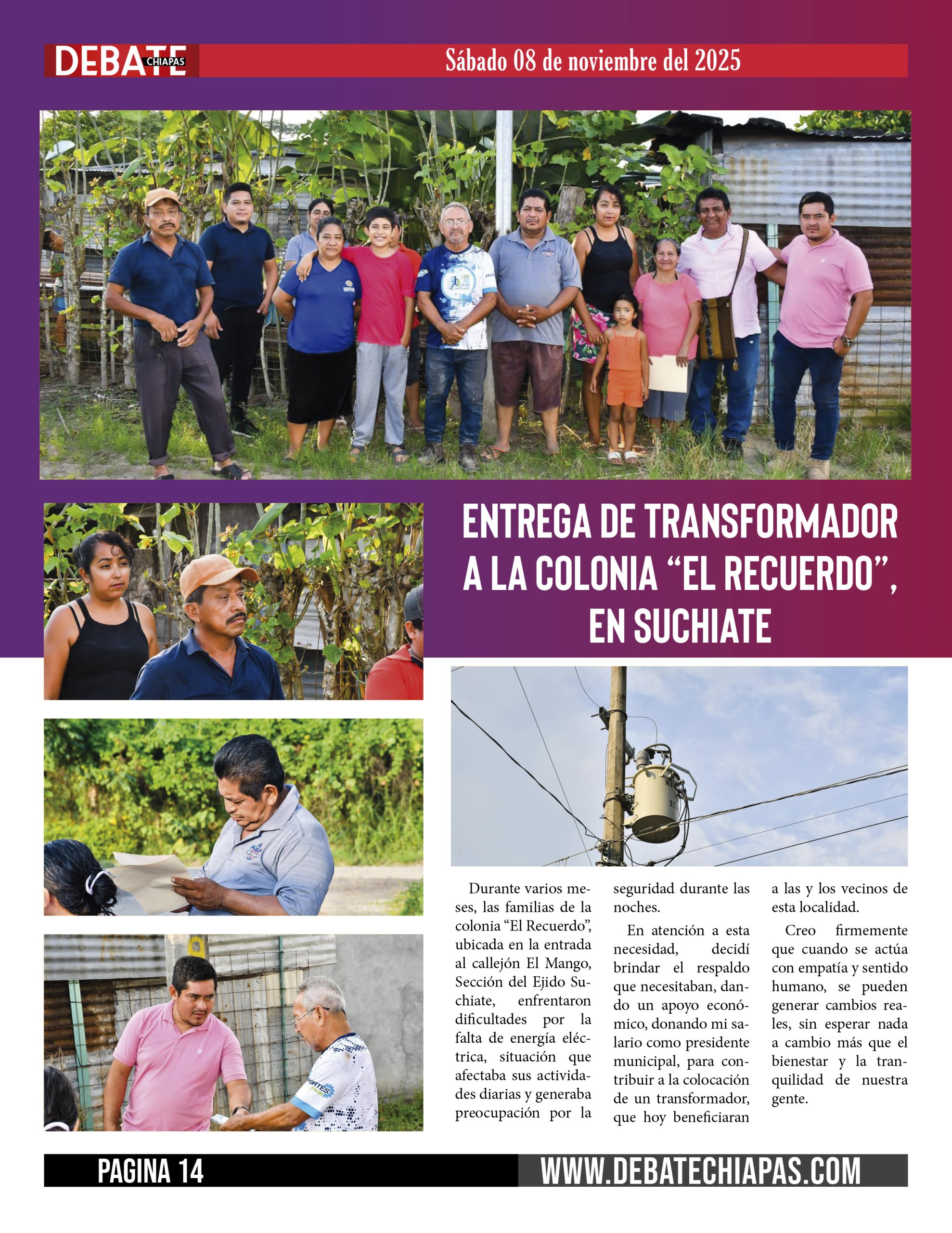 Durante varios meses, las familias de la colonia “El Recuerdo”, ubicada en la entrada al callejón El Mango, Sección del Ejido Suchiate, enfrentaron dificultades por la falta de energía eléctrica, situación que afectaba sus actividades diarias y generaba preocupación por la seguridad durante las noches.
