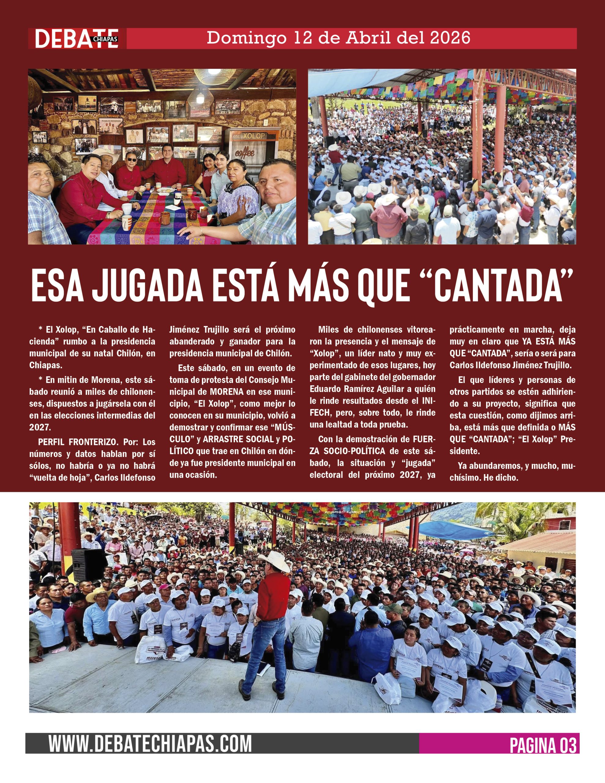 PERFIL FRONTERIZO. Por: Los números y datos hablan por sí sólos, no habría o ya no habrá «vuelta de hoja», Carlos Ildefonso Jiménez Trujillo será el próximo abanderado y ganador para la presidencia municipal de Chilón.