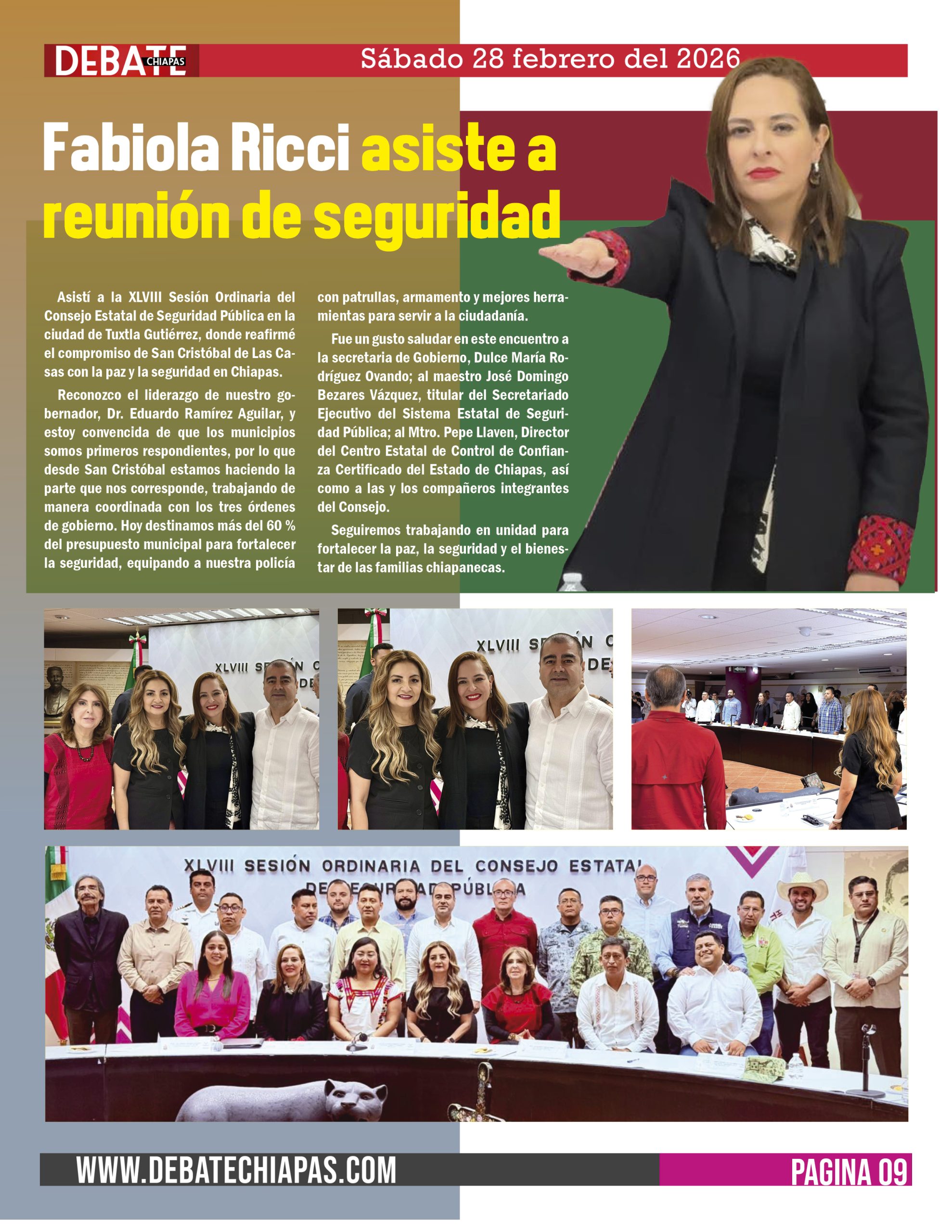 Fue un gusto saludar en este encuentro a la secretaria de Gobierno, Dulce María Rodríguez Ovando; al maestro José Domingo Bezares Vázquez, titular del Secretariado Ejecutivo del Sistema Estatal de Seguridad Pública; al Mtro. Pepe Llaven, Director del Centro Estatal de Control de Confianza Certificado del Estado de Chiapas, así como a las y los compañeros integrantes del Consejo.