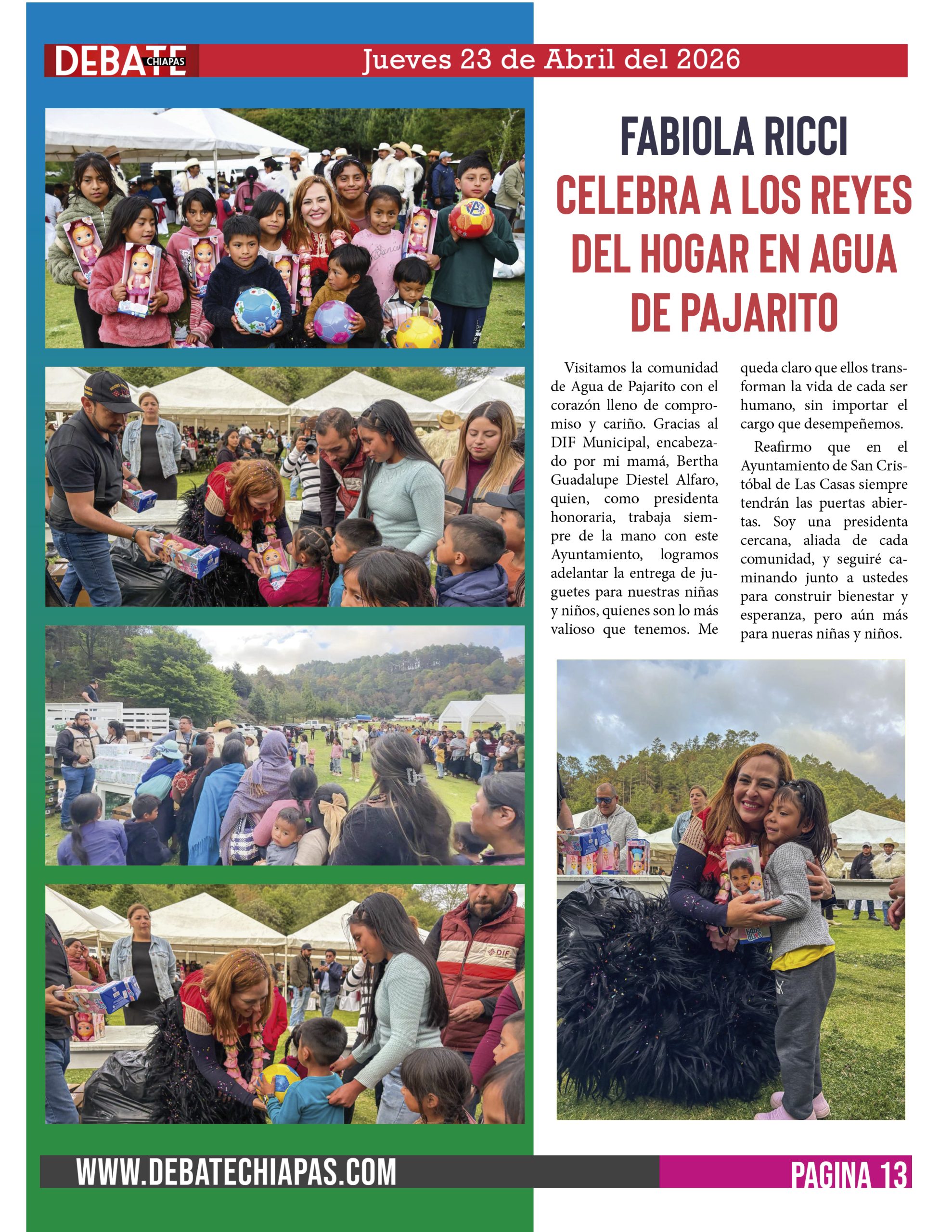 Visitamos la comunidad de Agua de Pajarito con el corazón lleno de compromiso y cariño. Gracias al DIF Municipal, encabezado por mi mamá, Bertha Guadalupe Diestel Alfaro, quien, como presidenta honoraria, trabaja siempre de la mano con este Ayuntamiento, logramos adelantar la entrega de juguetes para nuestras niñas y niños, quienes son lo más valioso que tenemos. Me queda claro que ellos transforman la vida de cada ser humano, sin importar el cargo que desempeñemos.