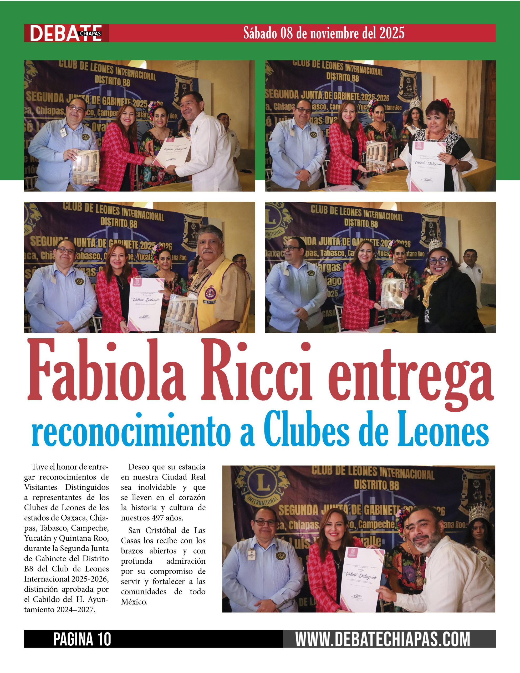 Tuve el honor de entregar reconocimientos de Visitantes Distinguidos a representantes de los Clubes de Leones de los estados de Oaxaca, Chiapas, Tabasco, Campeche, Yucatán y Quintana Roo, durante la Segunda Junta de Gabinete del Distrito B8 del Club de Leones Internacional 2025-2026, distinción aprobada por el Cabildo del H. Ayuntamiento 2024–2027.