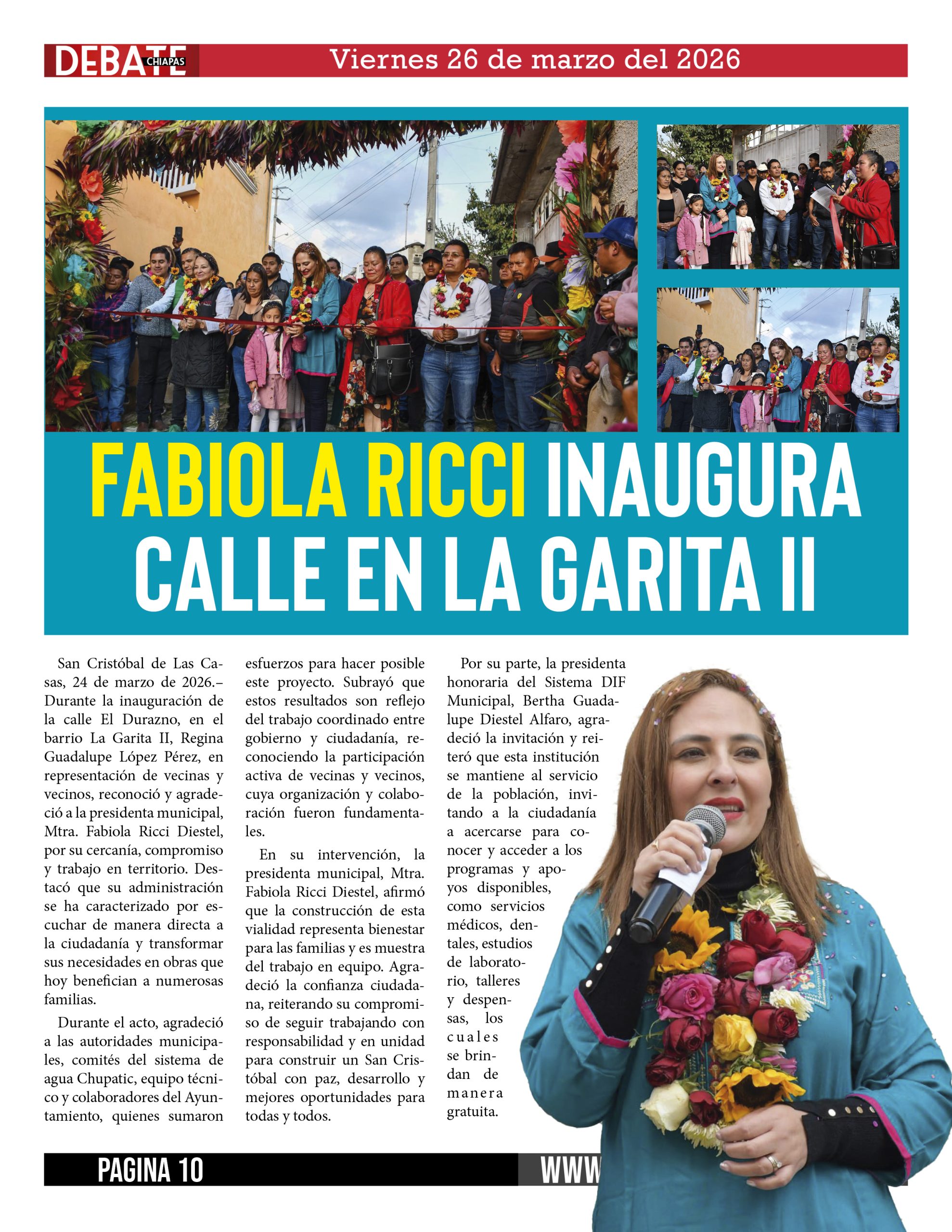 San Cristóbal de Las Casas, 24 de marzo de 2026.– Durante la inauguración de la calle El Durazno, en el barrio La Garita II, Regina Guadalupe López Pérez, en representación de vecinas y vecinos, reconoció y agradeció a la presidenta municipal, Mtra. Fabiola Ricci Diestel, por su cercanía, compromiso y trabajo en territorio. Destacó que su administración se ha caracterizado por escuchar de manera directa a la ciudadanía y transformar sus necesidades en obras que hoy benefician a numerosas familias.