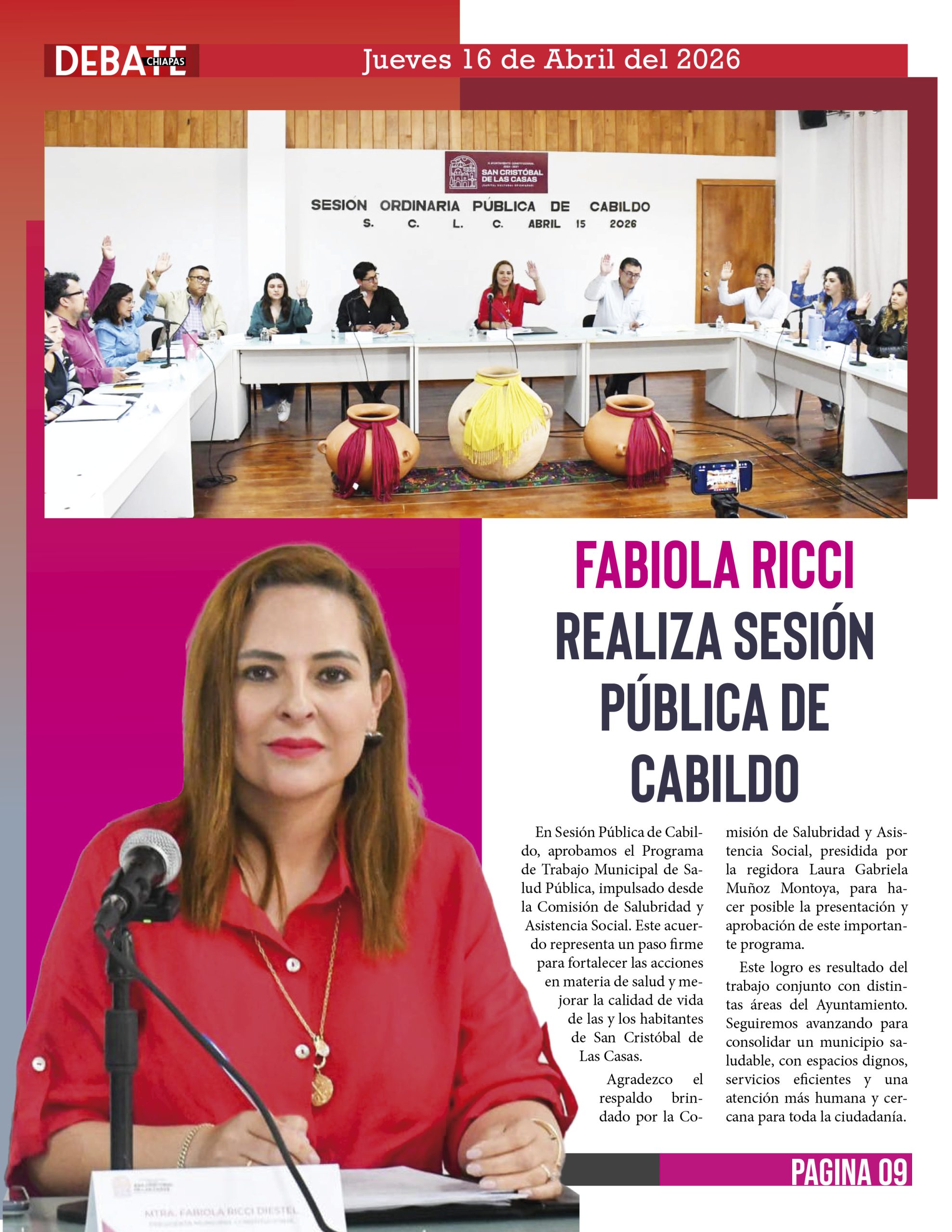En Sesión Pública de Cabildo, aprobamos el Programa de Trabajo Municipal de Salud Pública, impulsado desde la Comisión de Salubridad y Asistencia Social. Este acuerdo representa un paso firme para fortalecer las acciones en materia de salud y mejorar la calidad de vida de las y los habitantes de San Cristóbal de Las Casas.