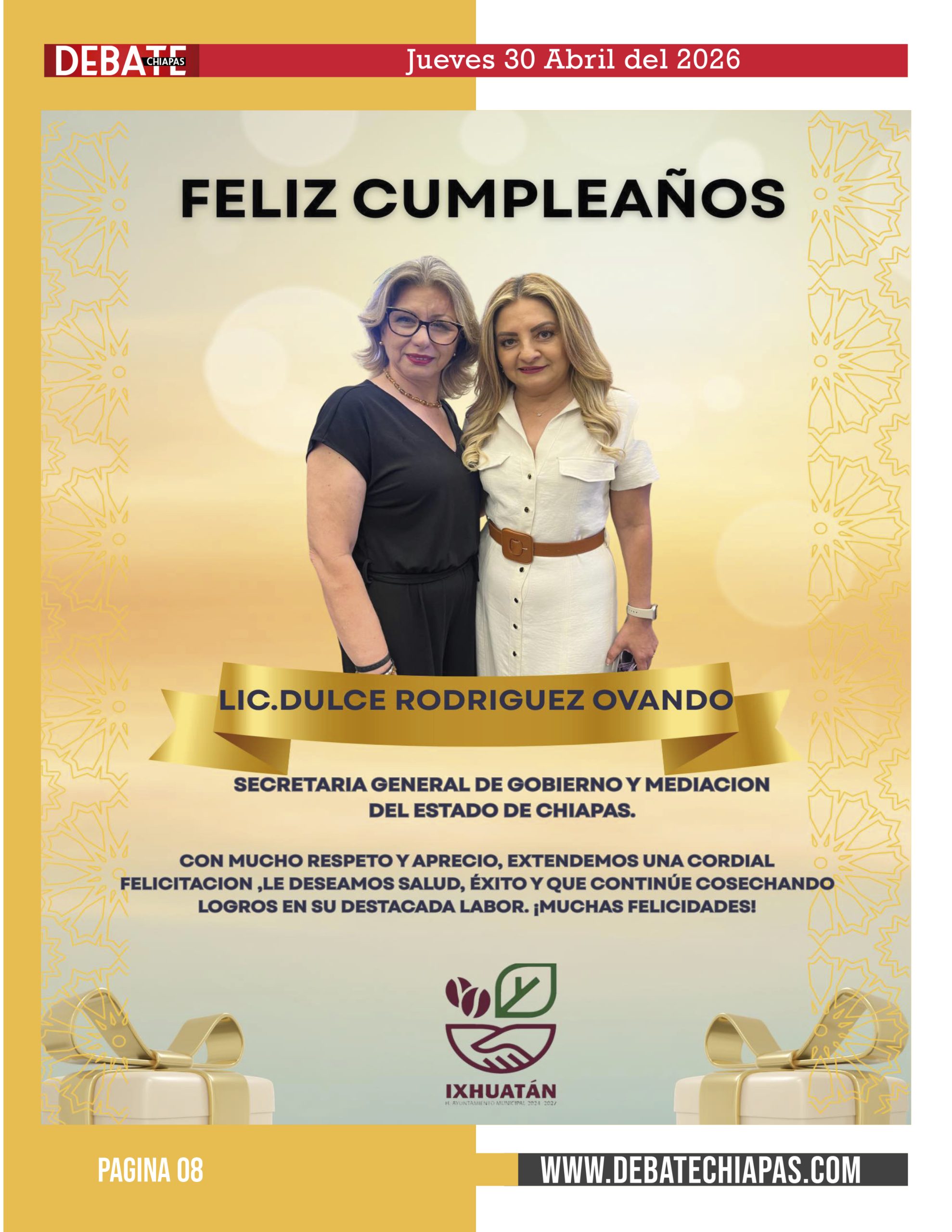 Con mucho respeto y aprecio, extendemos una cordial felicitación a la lic Dulce Rodríguez Ovando en su cumpleaños.