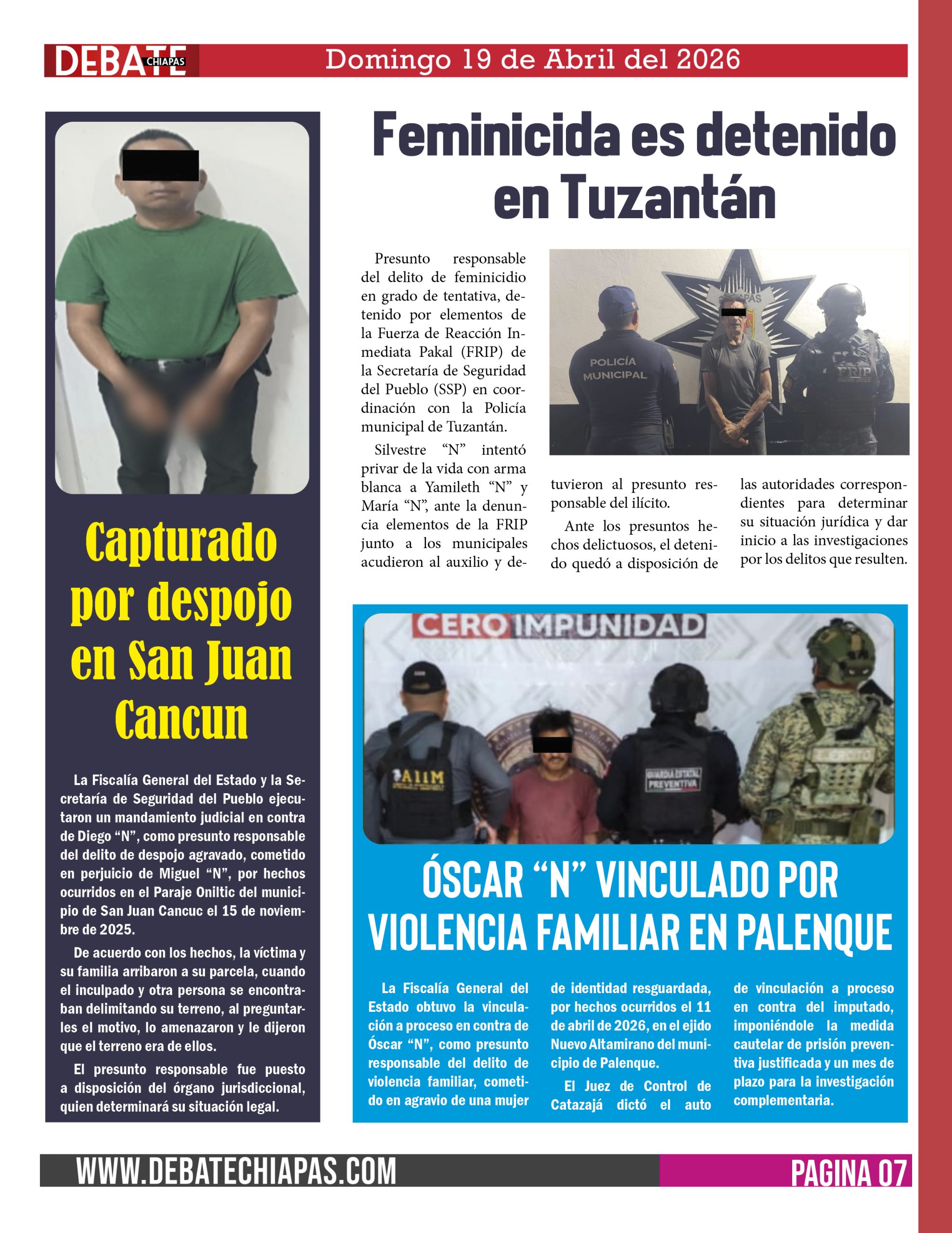 Presunto responsable del delito de feminicidio en grado de tentativa, detenido por elementos de la Fuerza de Reacción Inmediata Pakal (FRIP) de la Secretaría de Seguridad del Pueblo (SSP) en coordinación con la Policía municipal de Tuzantán.