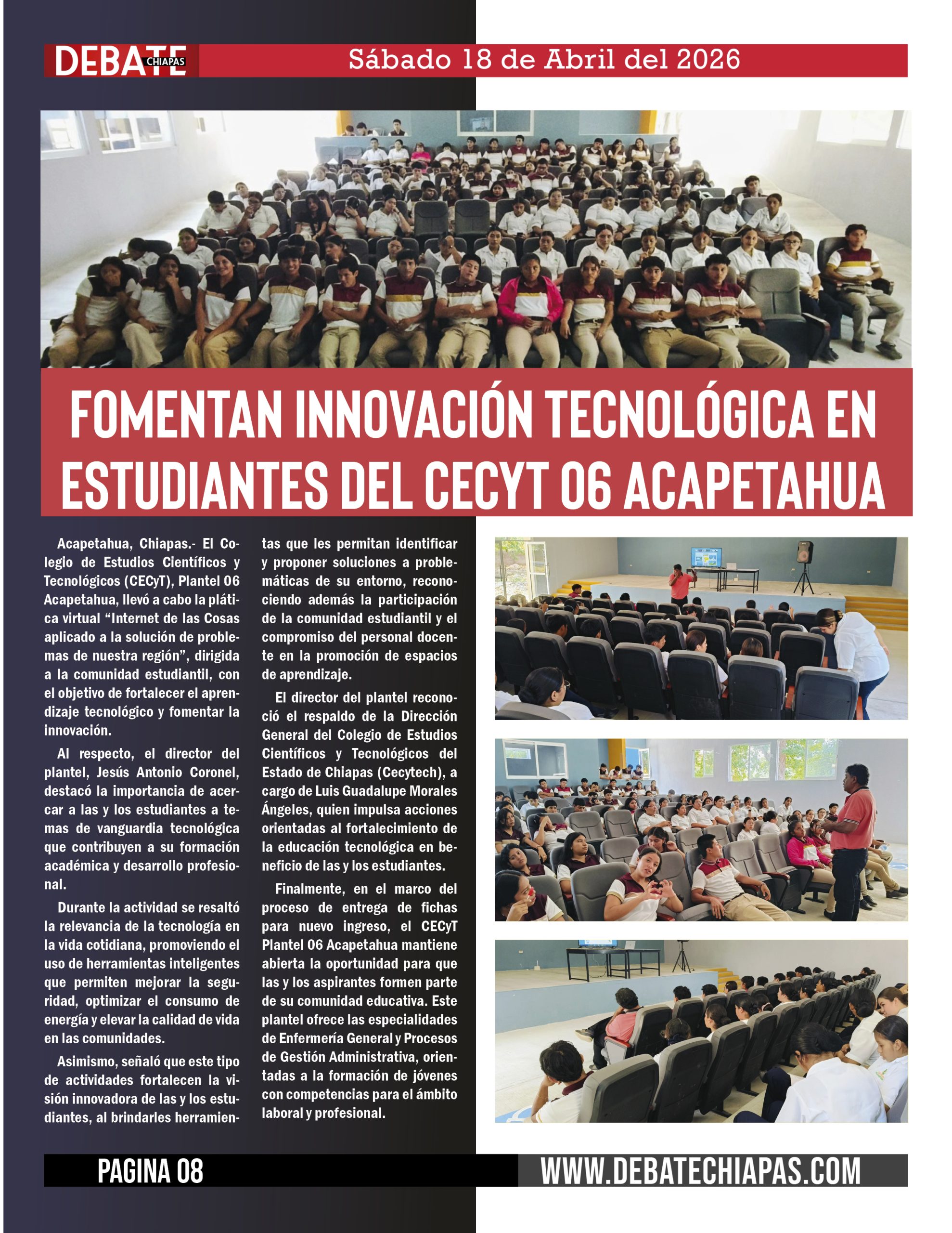 Fomentan innovación tecnológica en estudiantes del CECyT 06 Acapetahua