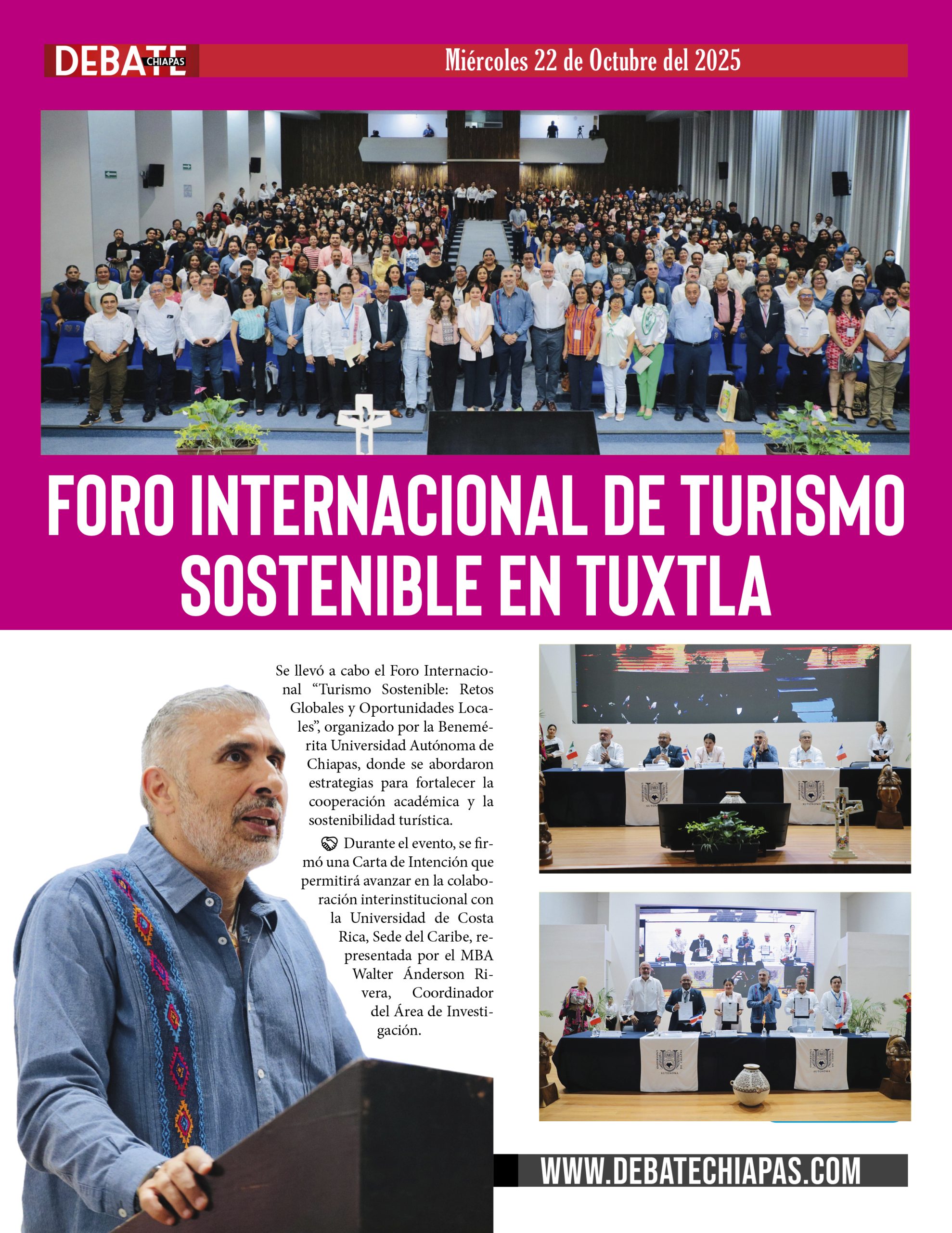 Se llevó a cabo el Foro Internacional “Turismo Sostenible: Retos Globales y Oportunidades Locales”, organizado por la Benemérita Universidad Autónoma de Chiapas, donde se abordaron estrategias para fortalecer la cooperación académica y la sostenibilidad turística.