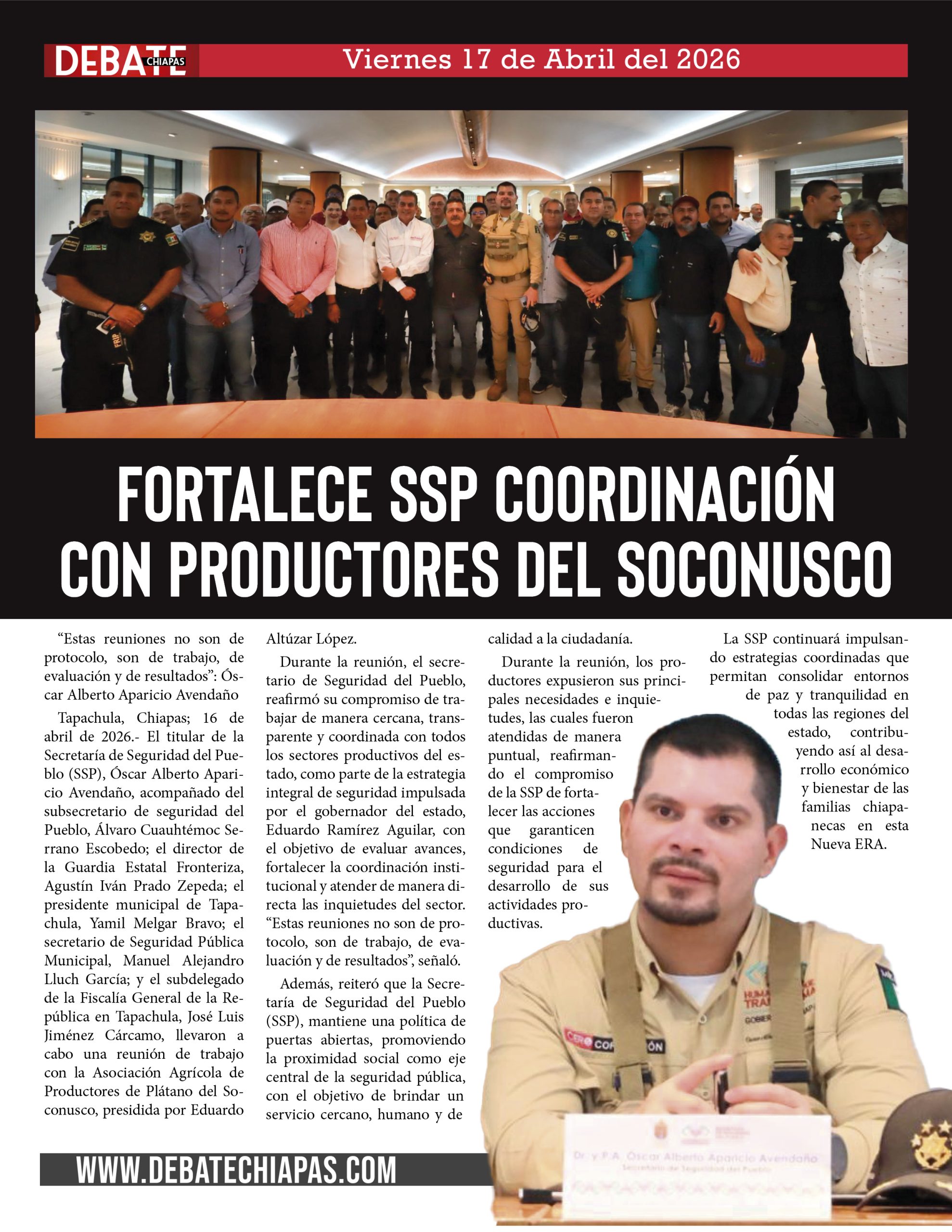 La SSP continuará impulsando estrategias coordinadas que permitan consolidar entornos de paz y tranquilidad en todas las regiones del estado, contribuyendo así al desarrollo económico y bienestar de las familias chiapanecas en esta Nueva ERA.