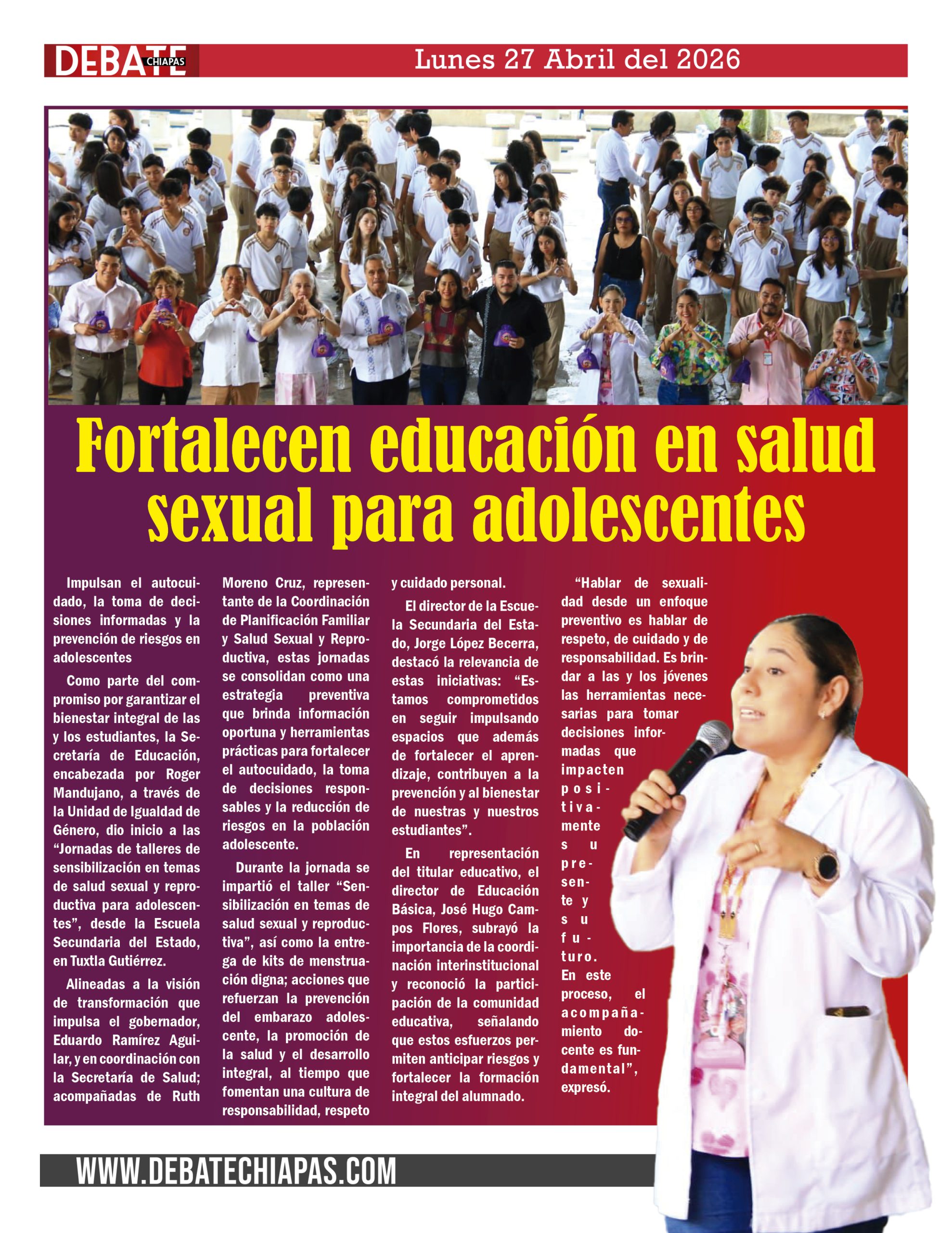 Alineadas a la visión de transformación que impulsa el gobernador, Eduardo Ramírez Aguilar, y en coordinación con la Secretaría de Salud; acompañadas de Ruth Moreno Cruz, representante de la Coordinación de Planificación Familiar y Salud Sexual y Reproductiva, estas jornadas se consolidan como una estrategia preventiva que brinda información oportuna y herramientas prácticas para fortalecer el autocuidado, la toma de decisiones responsables y la reducción de riesgos en la población adolescente.