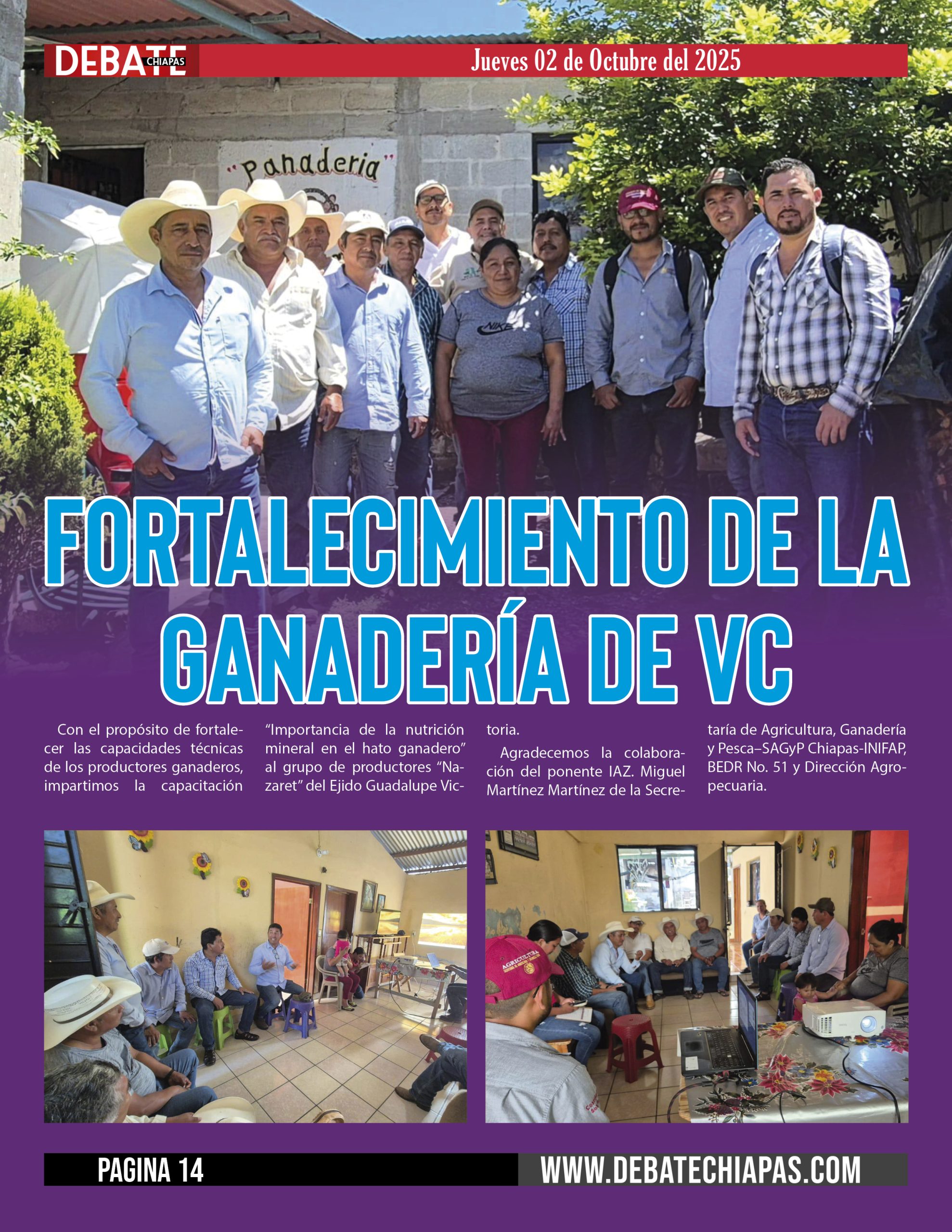 Con el propósito de fortalecer las capacidades técnicas de los productores ganaderos, impartimos la capacitación «Importancia de la nutrición mineral en el hato ganadero» al grupo de productores «Nazaret» del Ejido Guadalupe Victoria.