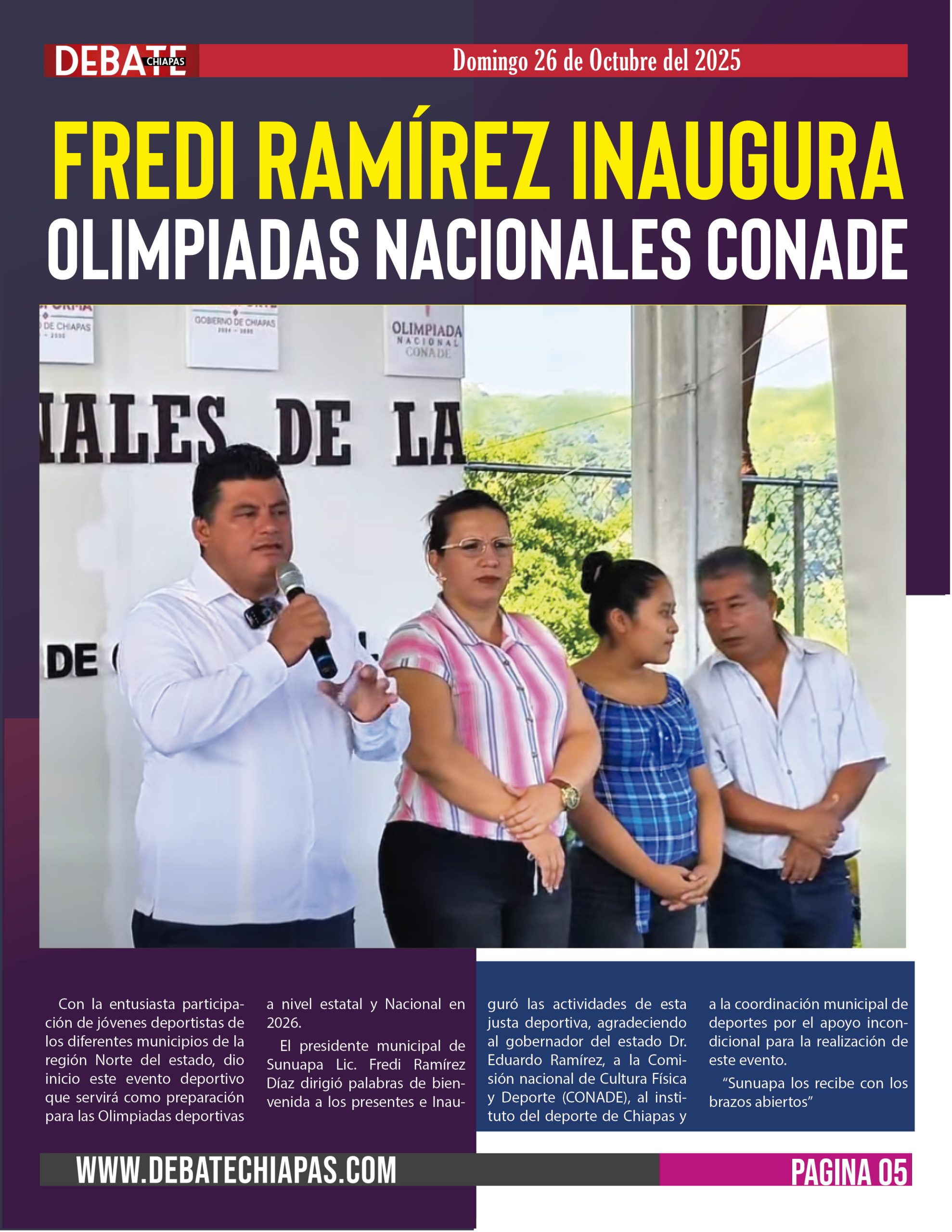 El presidente municipal de Sunuapa Lic. Fredi Ramírez Díaz dirigió palabras de bienvenida a los presentes e Inauguró las actividades de esta justa deportiva, agradeciendo al gobernador del estado Dr. Eduardo Ramírez, a la Comisión nacional de Cultura Física y Deporte (CONADE), al instituto del deporte de Chiapas y a la coordinación municipal de deportes por el apoyo incondicional para la realización de este evento.