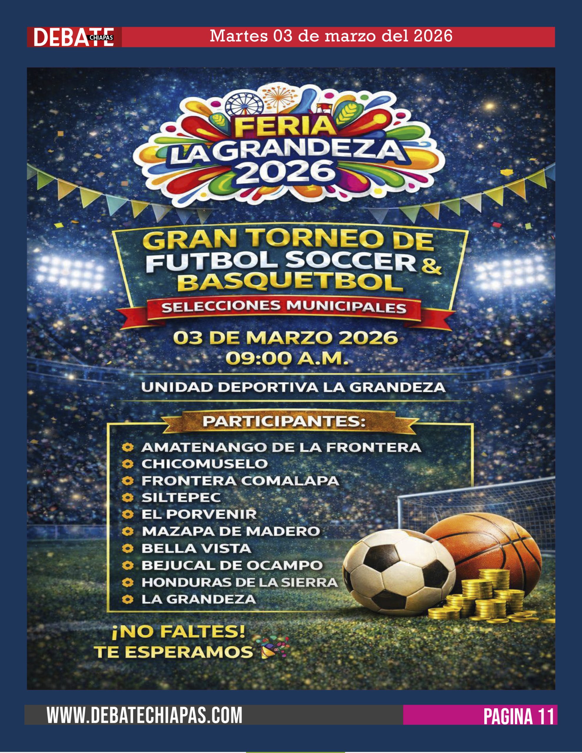 Se llevó a cabo el torneo de fútbol, categoría varonil libre; en honor a nuestra Feria Comercial, Cultural y Deportiva #LaGrandeza2026.