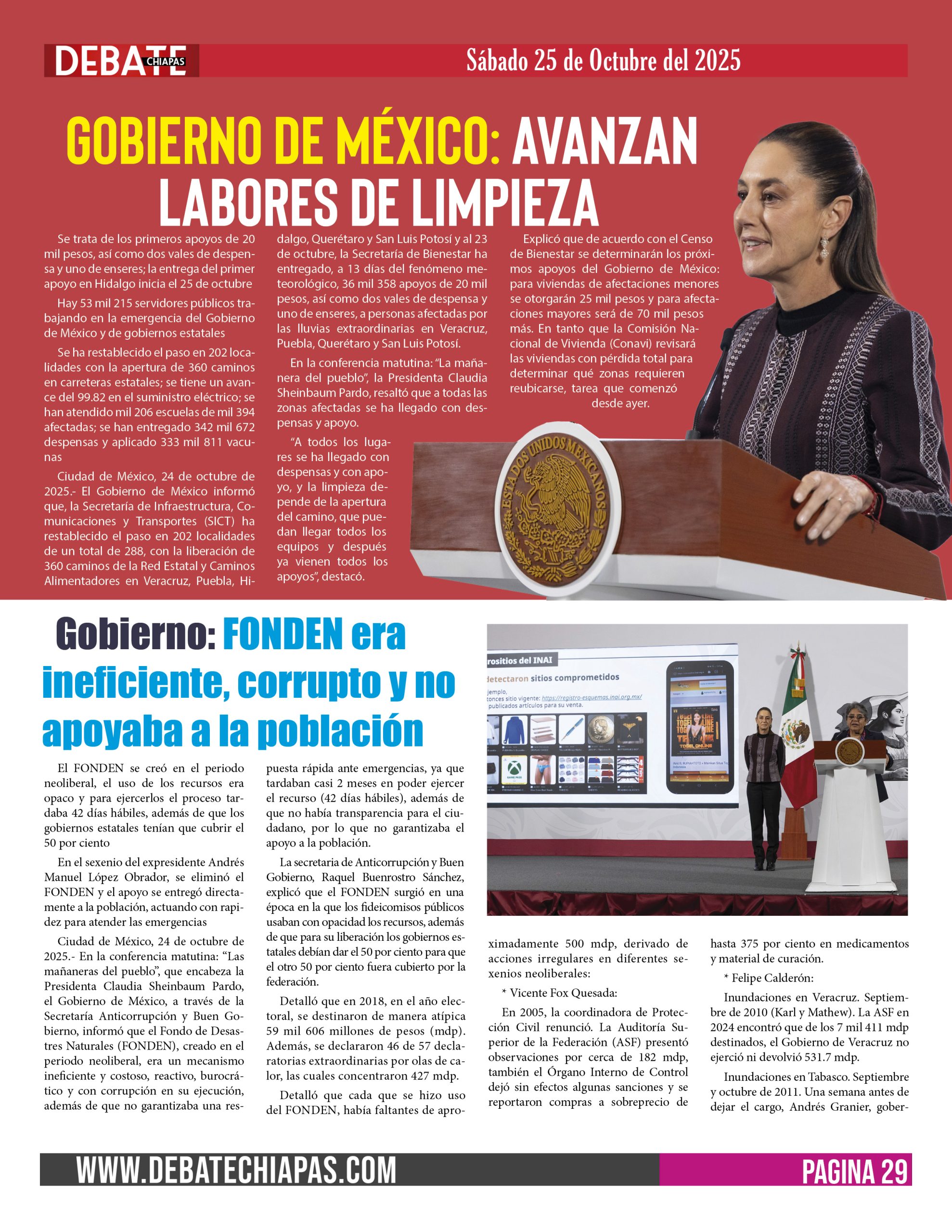 En la conferencia matutina: “La mañanera del pueblo”, la Presidenta Claudia Sheinbaum Pardo, resaltó que a todas las zonas afectadas se ha llegado con despensas y apoyo.