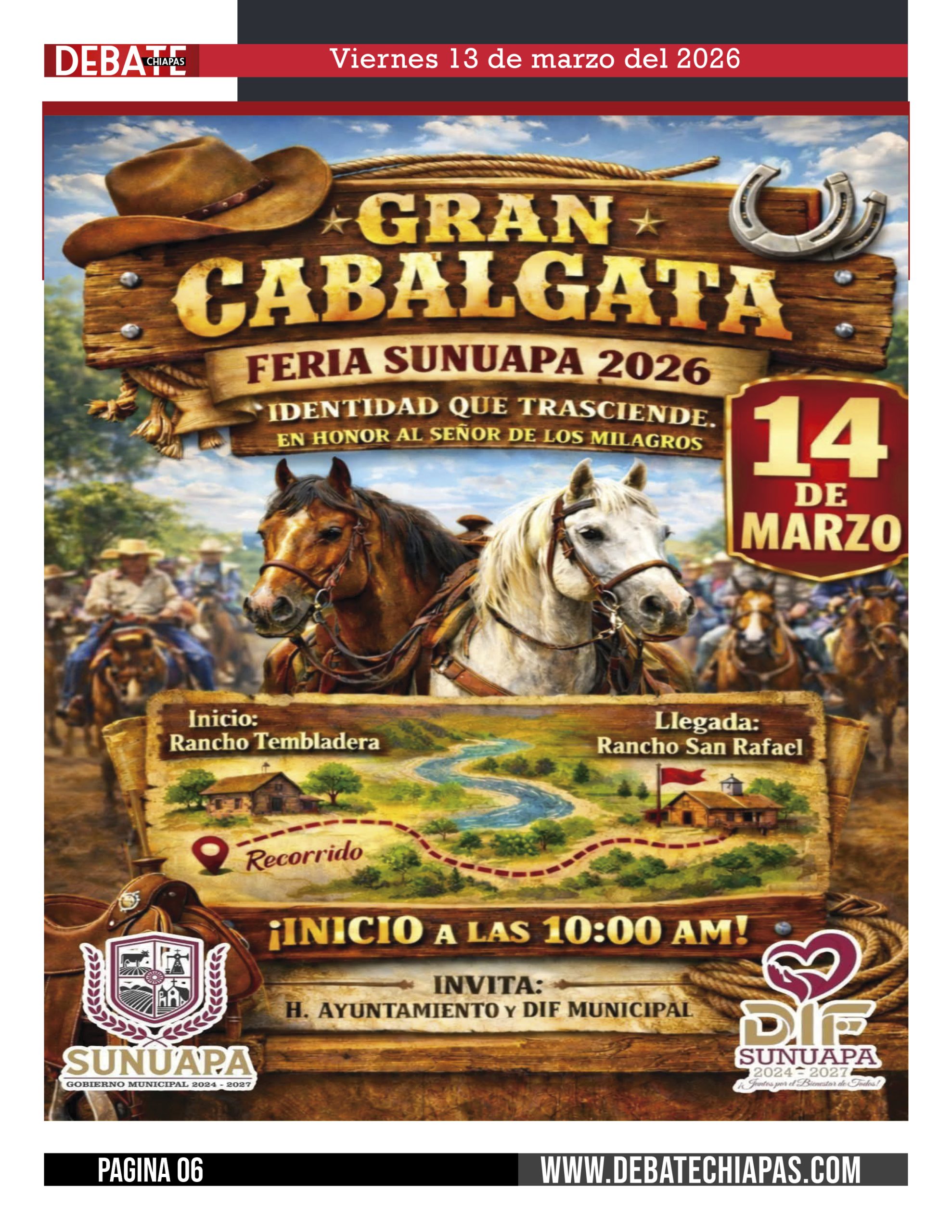 El Gobierno Municipal #Sunuapa 2024 – 2027 y el DIF Municipal Sunuapa 2024-2027 invitan cordialmente a las familias de nuestro municipio, a los amigos cabalgantes de la región y a quienes nos visitan de distintos lugares, a participar en la Gran Cabalgata de la Feria Sunuapa 2026, una tradición que fortalece nuestras raíces y celebra nuestra identidad.