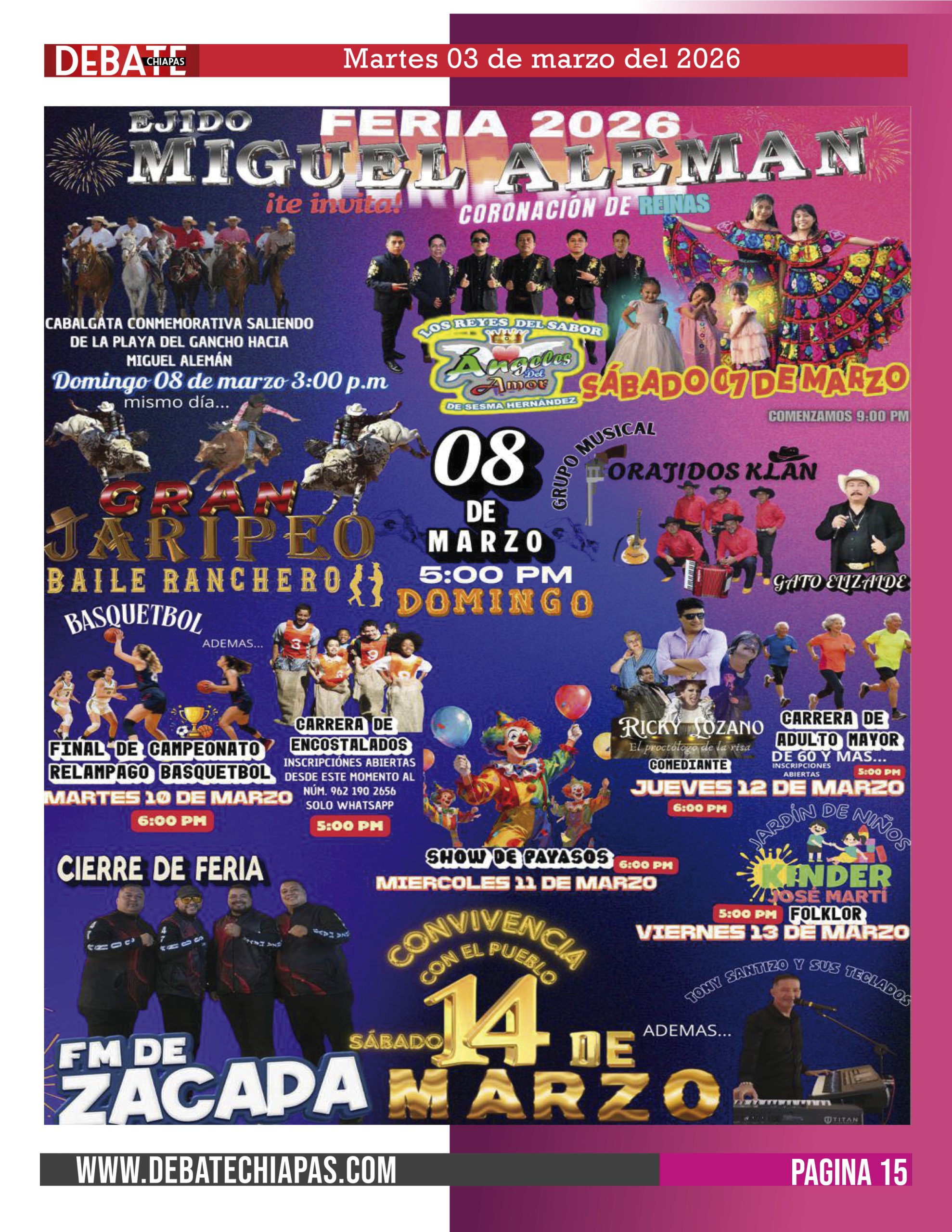 Amigos y amigas, quiero invitarlos a disfrutar de la gran Feria Ejido Miguel Alemán 2026