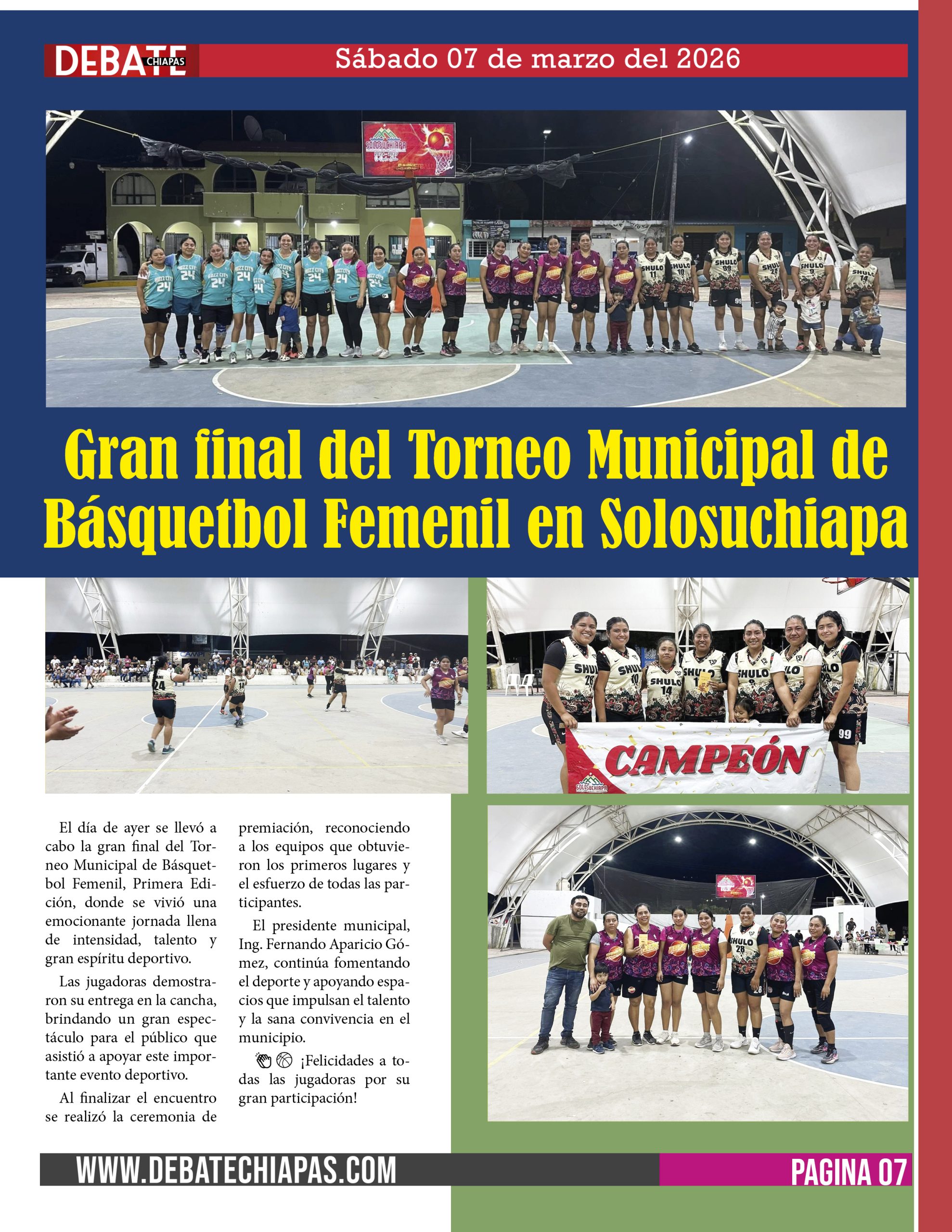 El día de ayer se llevó a cabo la gran final del Torneo Municipal de Básquetbol Femenil, Primera Edición, donde se vivió una emocionante jornada llena de intensidad, talento y gran espíritu deportivo.
