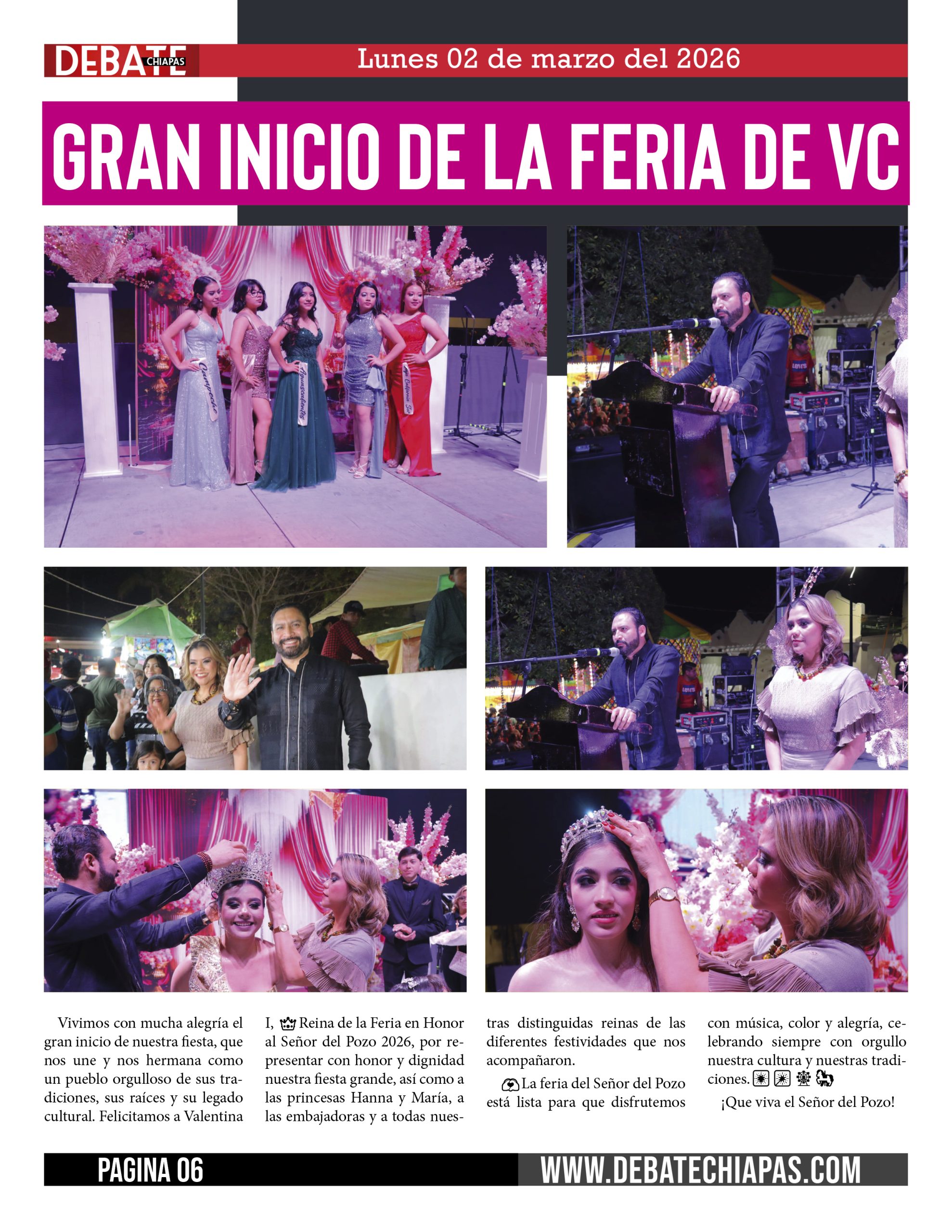 Vivimos con mucha alegría el gran inicio de nuestra fiesta, que nos une y nos hermana como un pueblo orgulloso de sus tradiciones, sus raíces y su legado cultural. Felicitamos a Valentina I, 👑Reina de la Feria en Honor al Señor del Pozo 2026, por representar con honor y dignidad nuestra fiesta grande, así como a las princesas Hanna y María, a las embajadoras y a todas nuestras distinguidas reinas de las diferentes festividades que nos acompañaron.