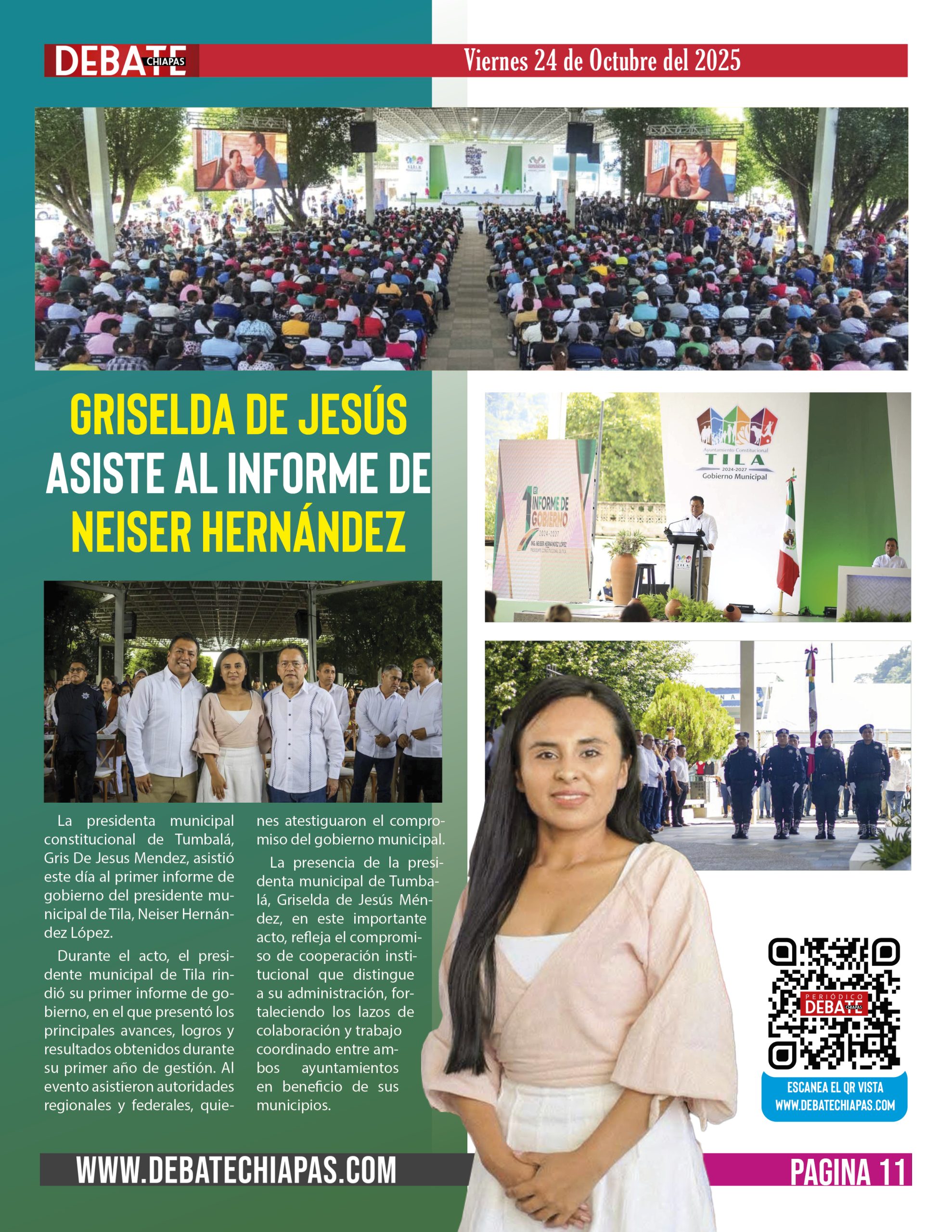 Durante el acto, el presidente municipal de Tila rindió su primer informe de gobierno, en el que presentó los principales avances, logros y resultados obtenidos durante su primer año de gestión. Al evento asistieron autoridades regionales y federales, quienes atestiguaron el compromiso del gobierno municipal.