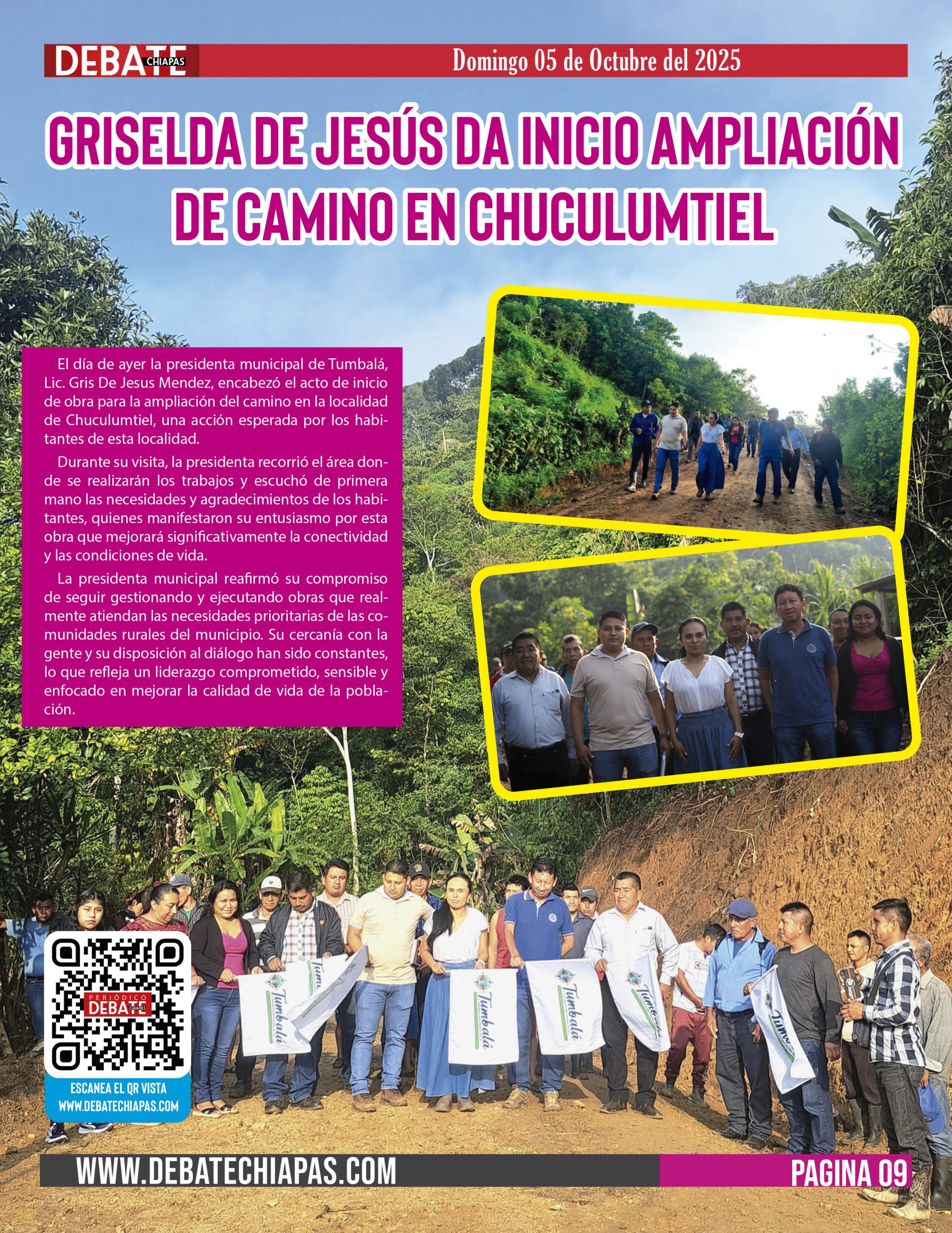 El día de ayer la presidenta municipal de Tumbalá, Lic. Gris De Jesus Mendez, encabezó el acto de inicio de obra para la ampliación del camino en la localidad de Chuculumtiel, una acción esperada por los habitantes de esta localidad.