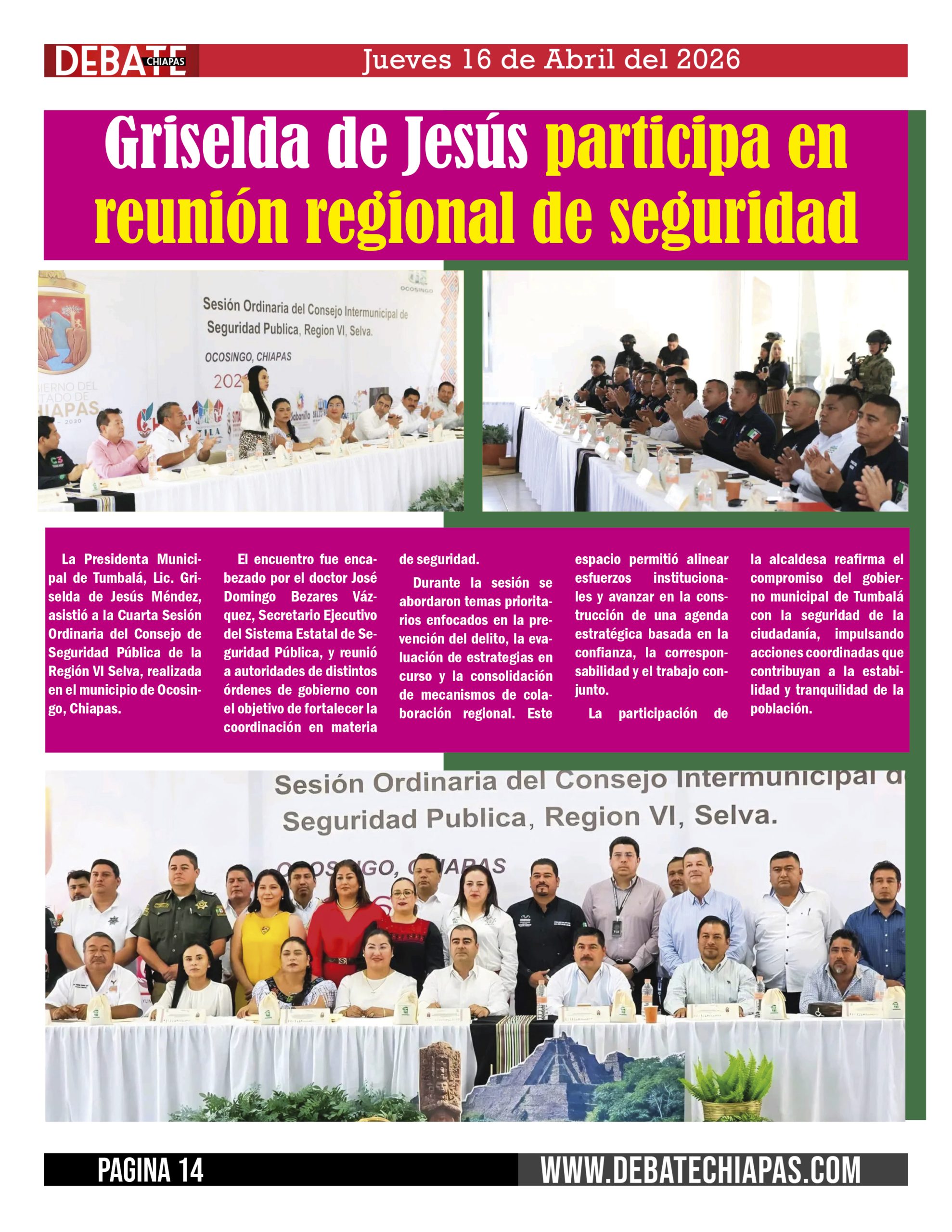 La Presidenta Municipal de Tumbalá, Lic. Griselda de Jesús Méndez, asistió a la Cuarta Sesión Ordinaria del Consejo de Seguridad Pública de la Región VI Selva, realizada en el municipio de Ocosingo, Chiapas.