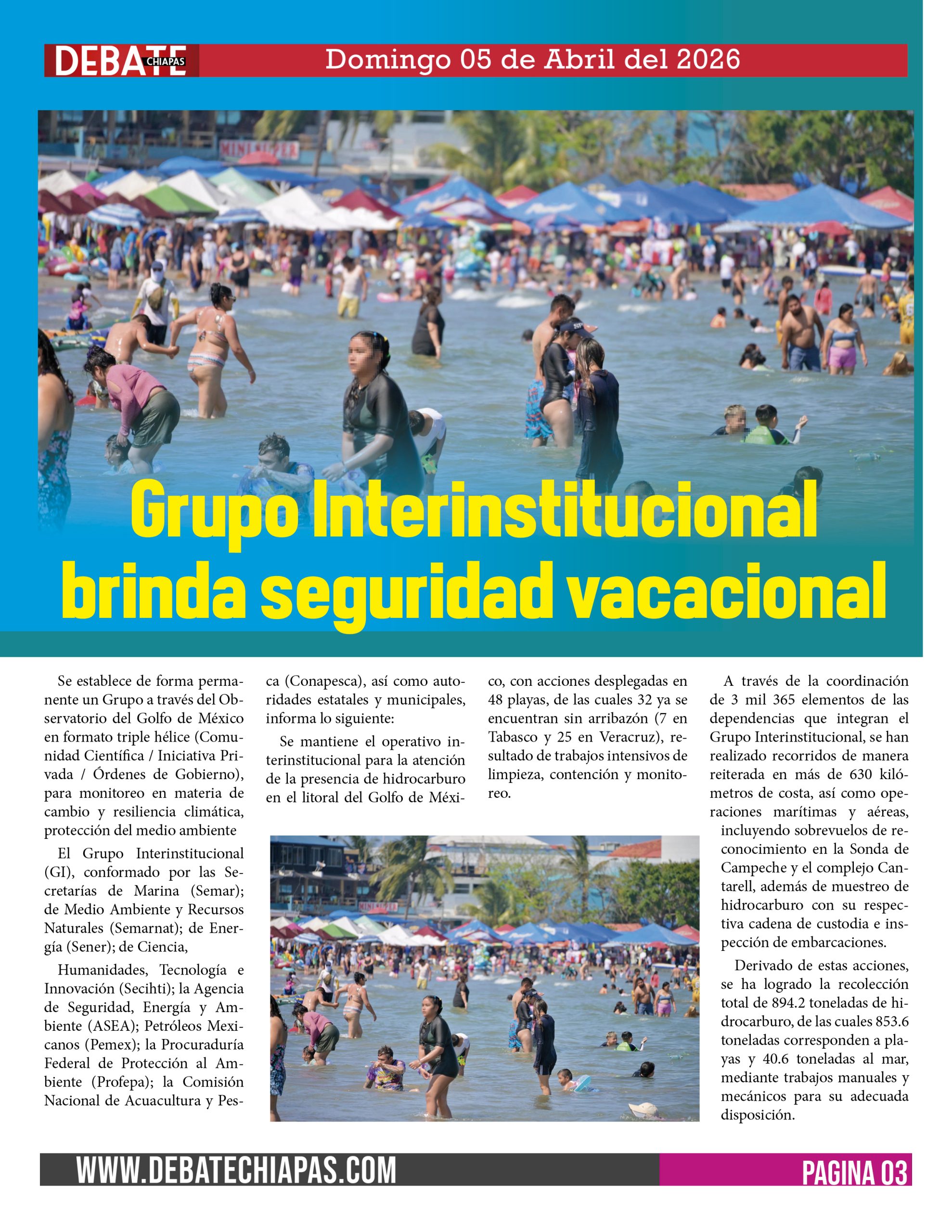litoral sin registrar fauna afectada. La actividad turística en Ciudad del Carmen, Papantla, Veracruz, Boca del Río, Alvarado, Rancho Playa y Tuxpan se realizó sin contratiempos