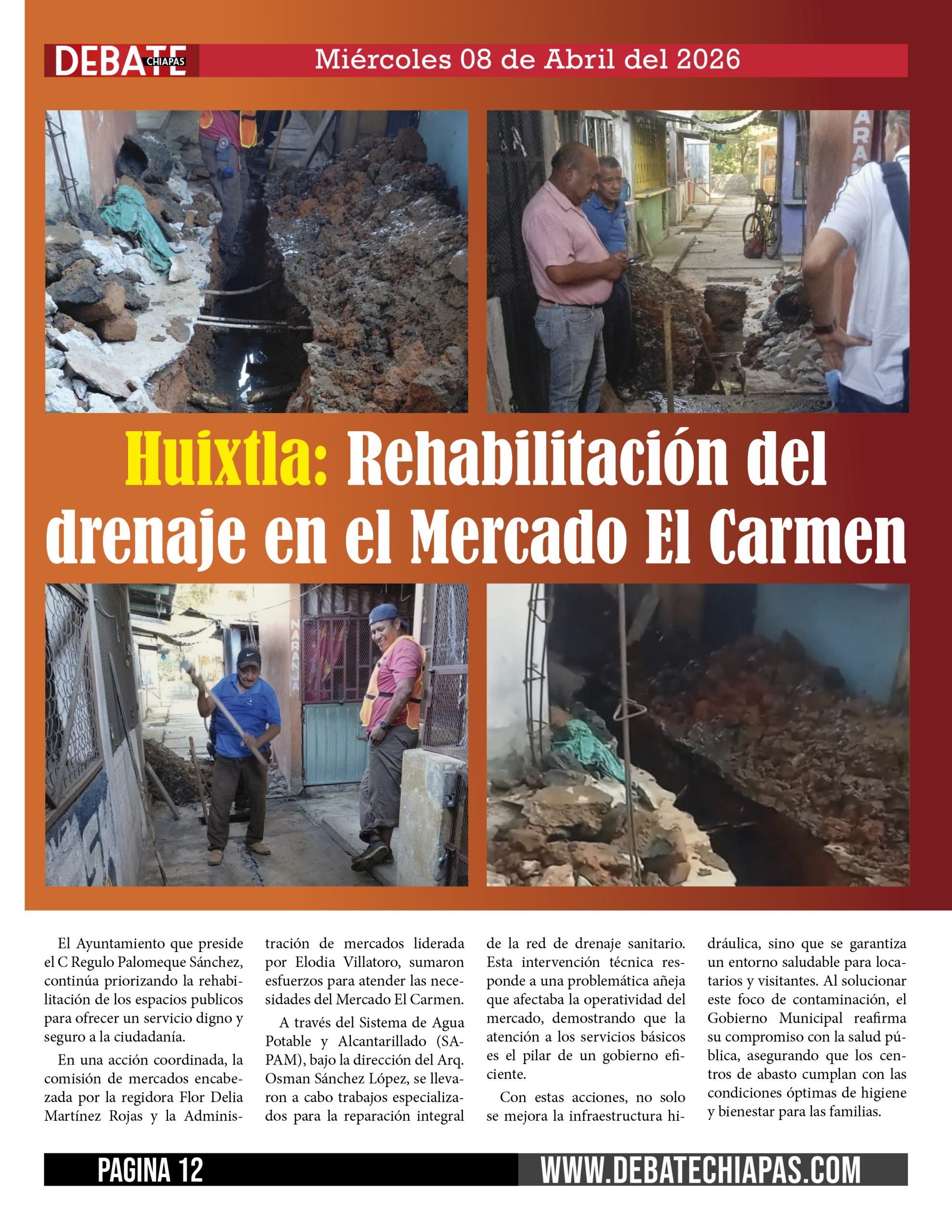 A través del Sistema de Agua Potable y Alcantarillado (SAPAM), bajo la dirección del Arq. Osman Sánchez López, se llevaron a cabo trabajos especializados para la reparación integral de la red de drenaje sanitario. Esta intervención técnica responde a una problemática añeja que afectaba la operatividad del mercado, demostrando que la atención a los servicios básicos es el pilar de un gobierno eficiente.