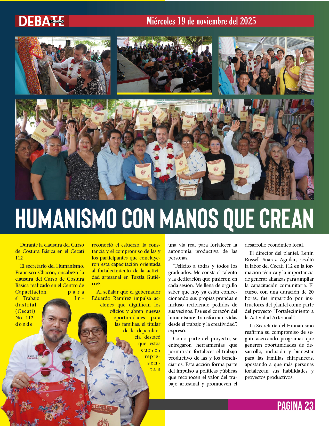 La Secretaría del Humanismo reafirma su compromiso de seguir acercando programas que generen oportunidades de desarrollo, inclusión y bienestar para las familias chiapanecas, apostando a que más personas fortalezcan sus habilidades y proyectos productivos.