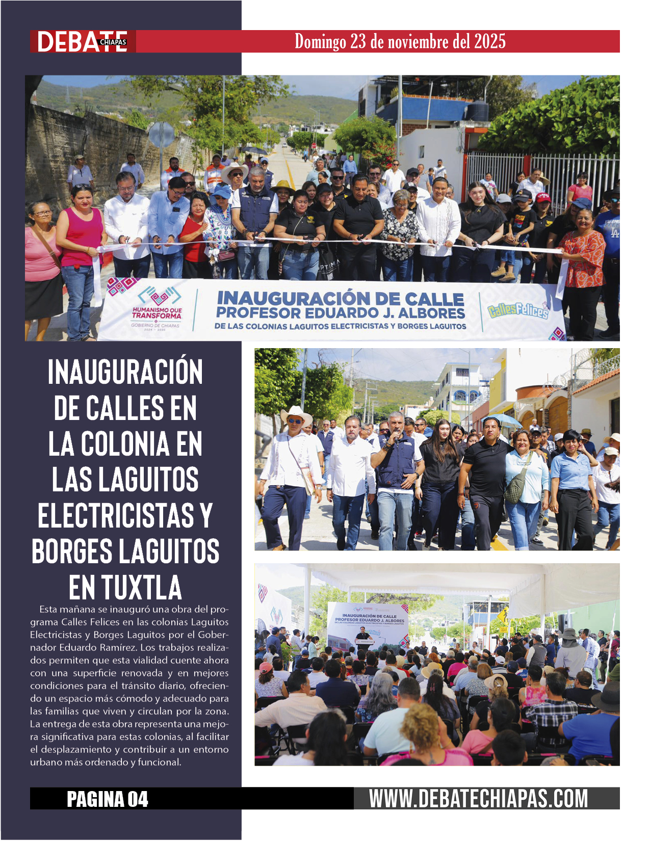 Inauguración calle en la colonia en las Laguitos Electricistas y Borges Laguitos en Tuxtla