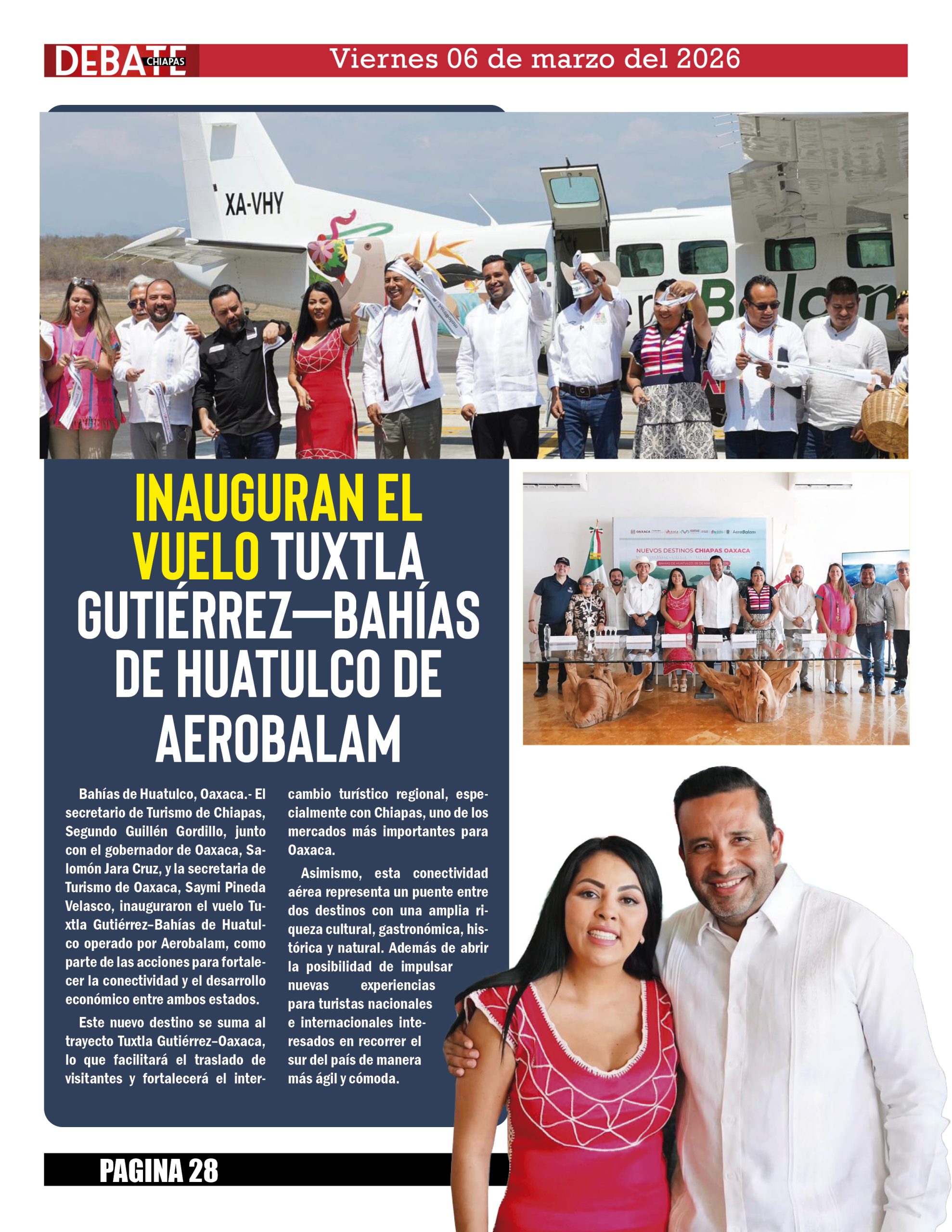 Inauguran el vuelo Tuxtla Gutiérrez–Bahías de Huatulco de Aerobalam