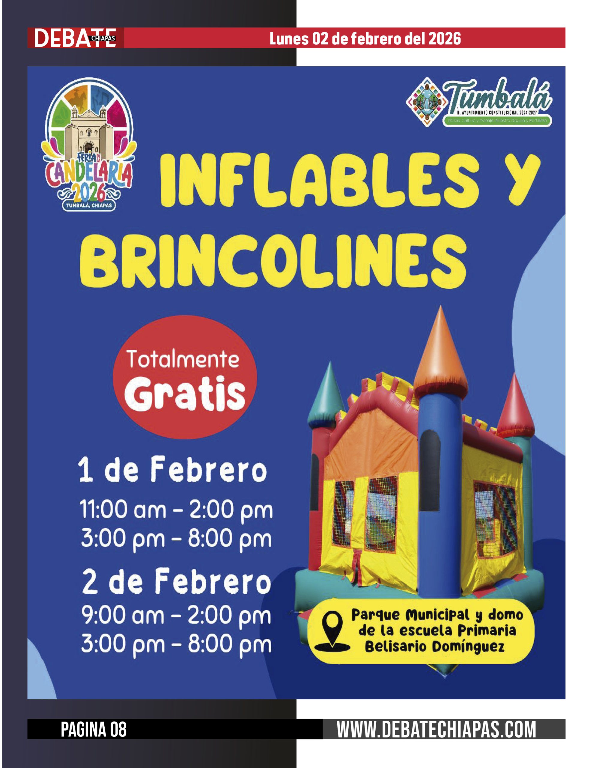 El H. Ayuntamiento Municipalde Tumbalá invita cordialmente a los niños y niñas a asistir y disfrutar de los inflables y brincolines totalmente gratis.
