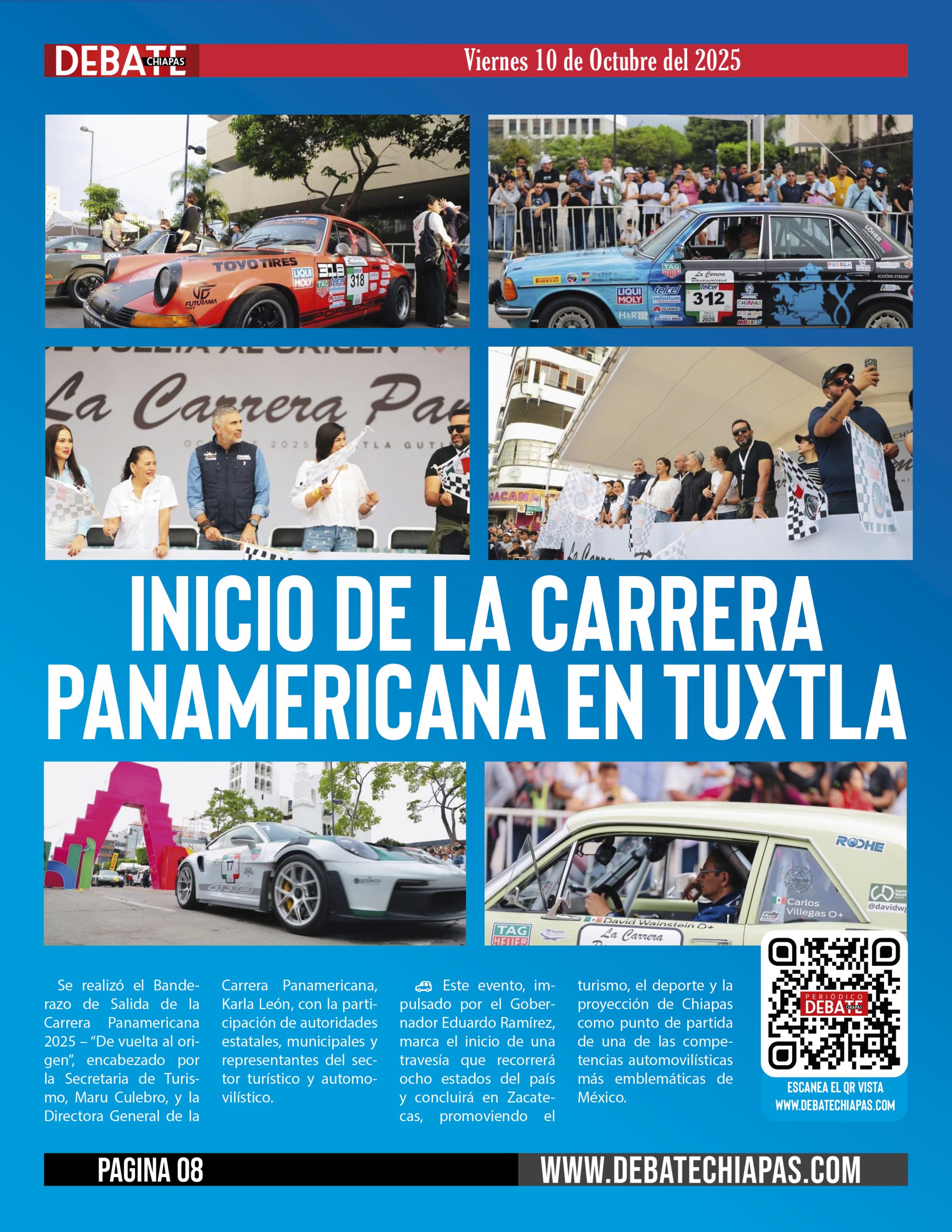 🚗 Este evento, impulsado por el Gobernador Eduardo Ramírez, marca el inicio de una travesía que recorrerá ocho estados del país y concluirá en Zacatecas, promoviendo el turismo, el deporte y la proyección de Chiapas como punto de partida de una de las competencias automovilísticas más emblemáticas de México.