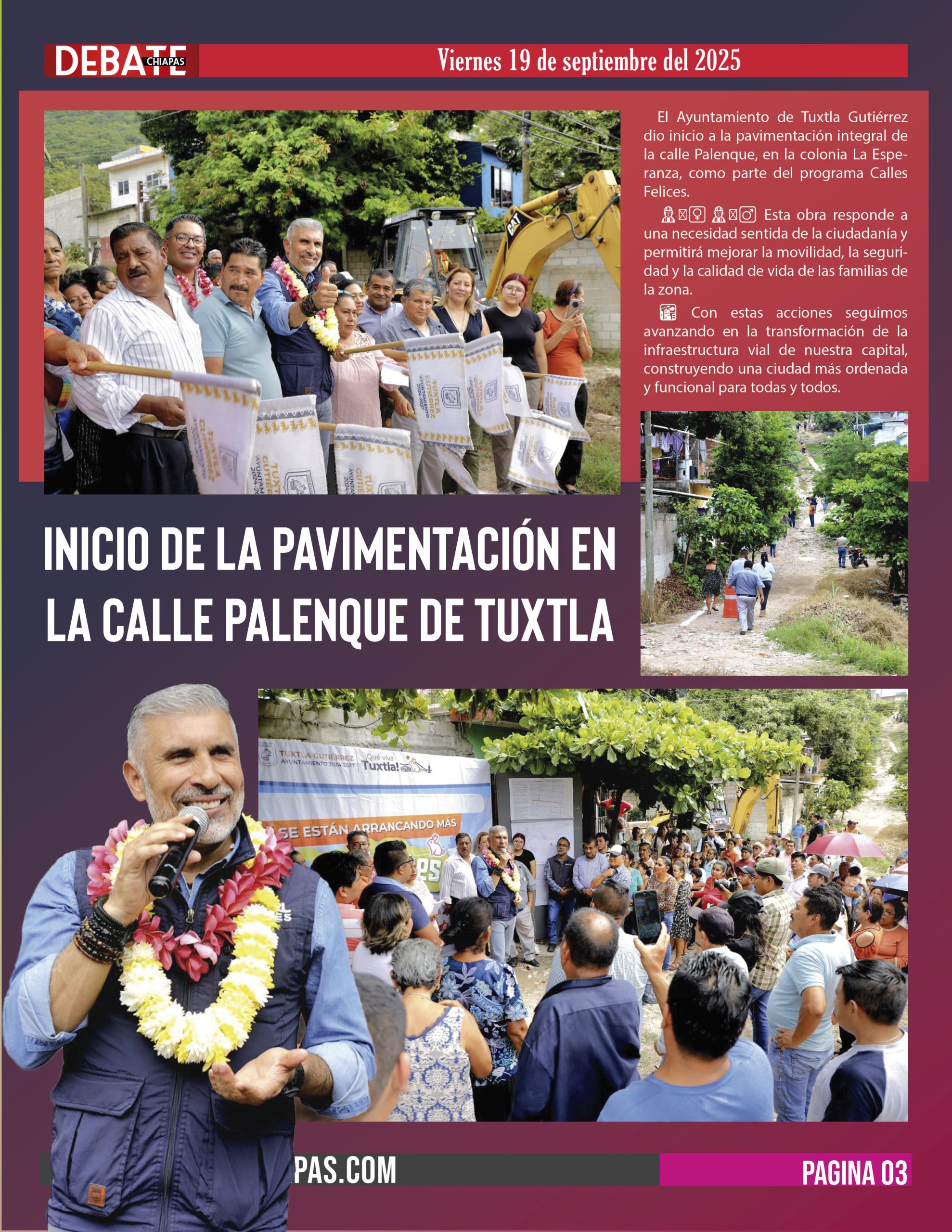 El Ayuntamiento de Tuxtla Gutiérrez dio inicio a la pavimentación integral de la calle Palenque, en la colonia La Esperanza, como parte del programa Calles Felices.