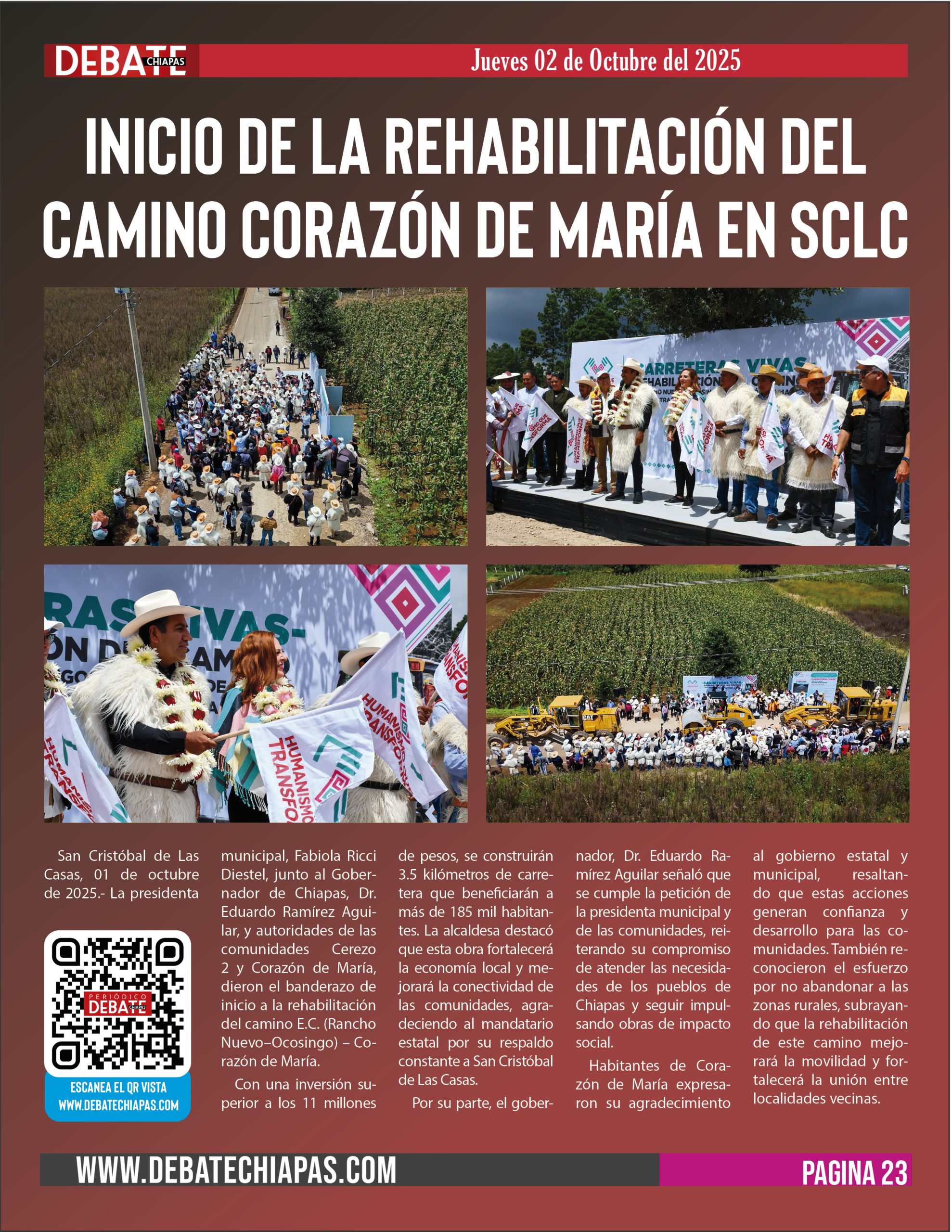 Con una inversión superior a los 11 millones de pesos, se construirán 3.5 kilómetros de carretera que beneficiarán a más de 185 mil habitantes. La alcaldesa destacó que esta obra fortalecerá la economía local y mejorará la conectividad de las comunidades, agradeciendo al mandatario estatal por su respaldo constante a San Cristóbal de Las Casas.